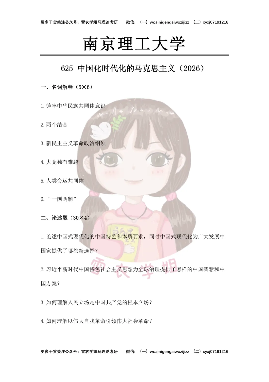 南京理工大学对这一门专业课的考察内容较为基础,同时与时政热点的结合十分紧密。考生在备考时应着力夯实理论基础,系统梳理知识脉络;同时要高度关注时事政治,深入理解重大会议精神和政策文件内涵,将理论学习与时代关切进行有机结合。