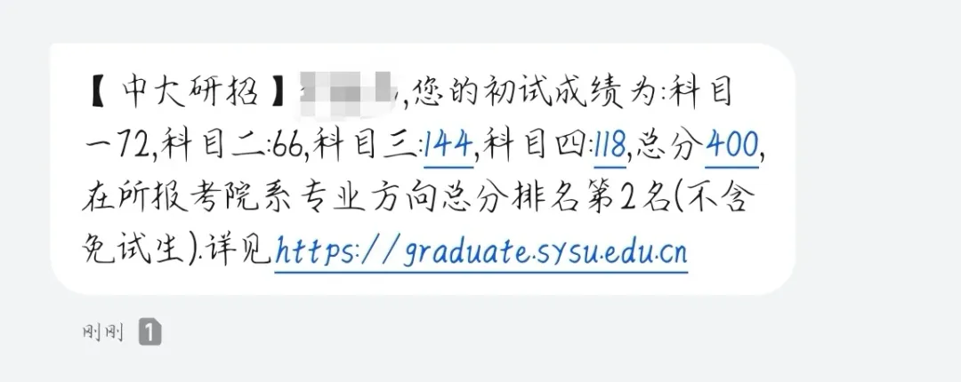 还有些高校会直接把你的成绩通过短信发给考生。比如中山大学往年会到点给考生发短信,单科分数、总分、排名,给得非常详细!