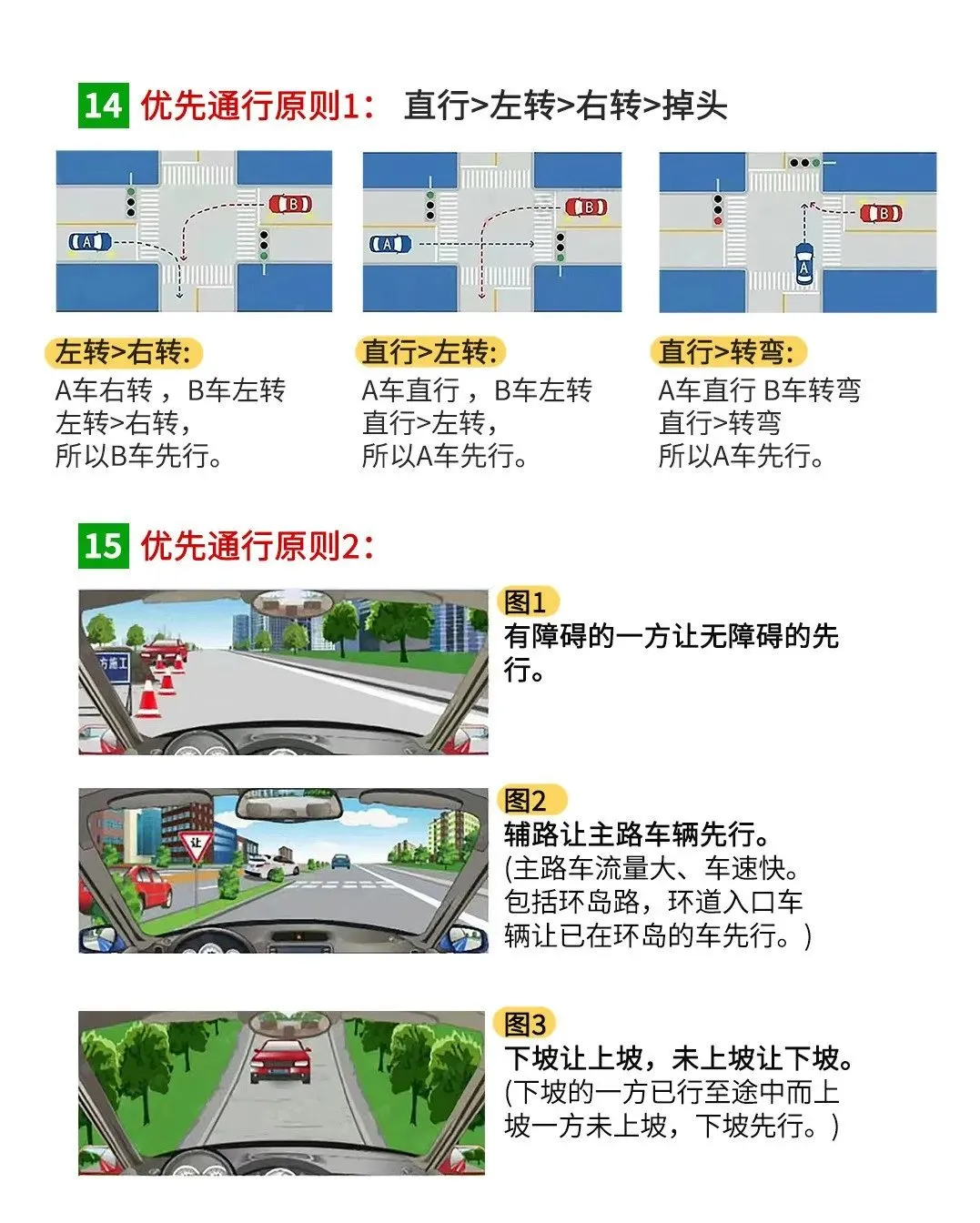 16. 路口通行原则:转弯让直行、右转弯让左转弯,同侧直行车辆中右侧车辆先行。