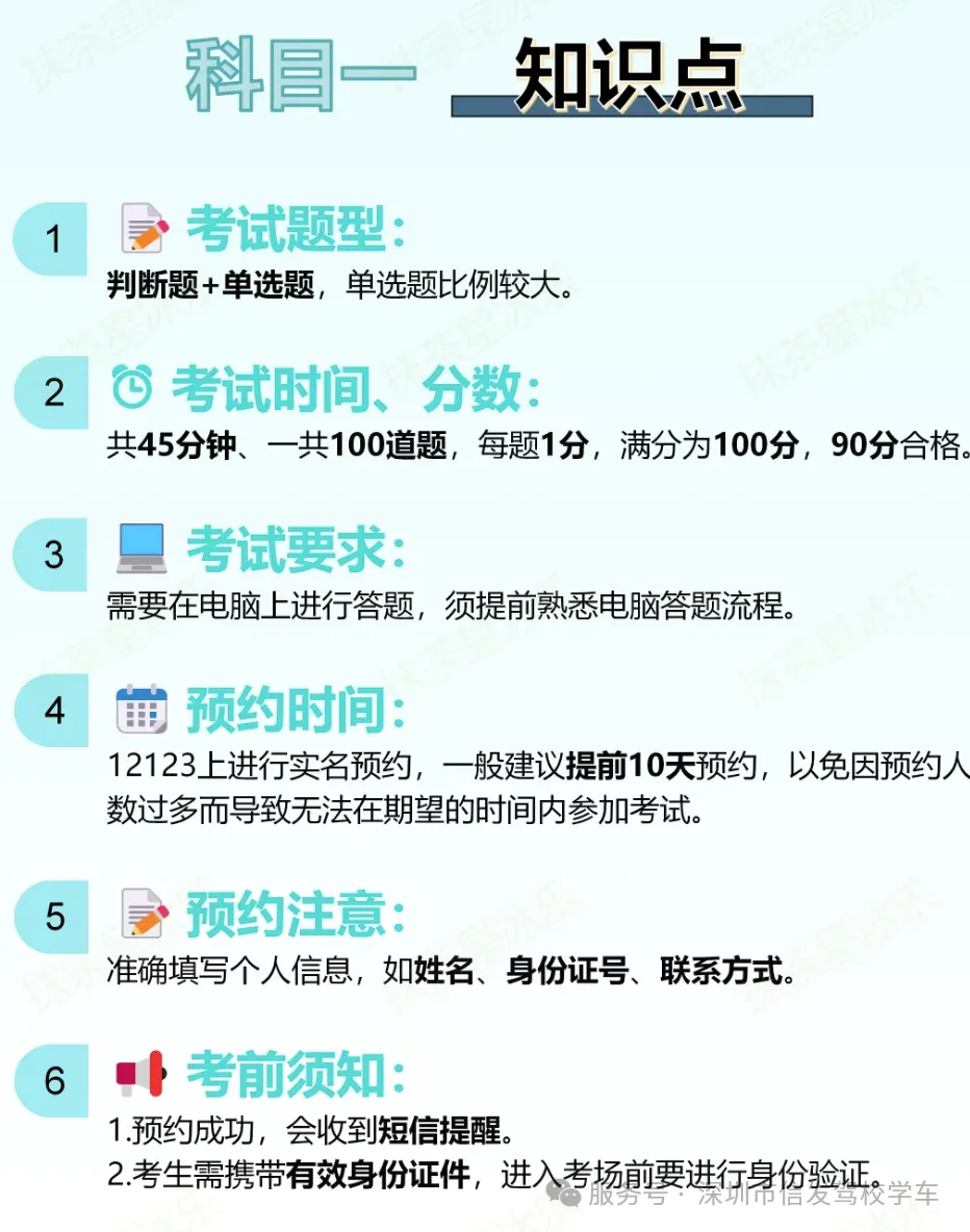 科目一的分数:一共100道题,每题1分,满分为100分,90分合格。