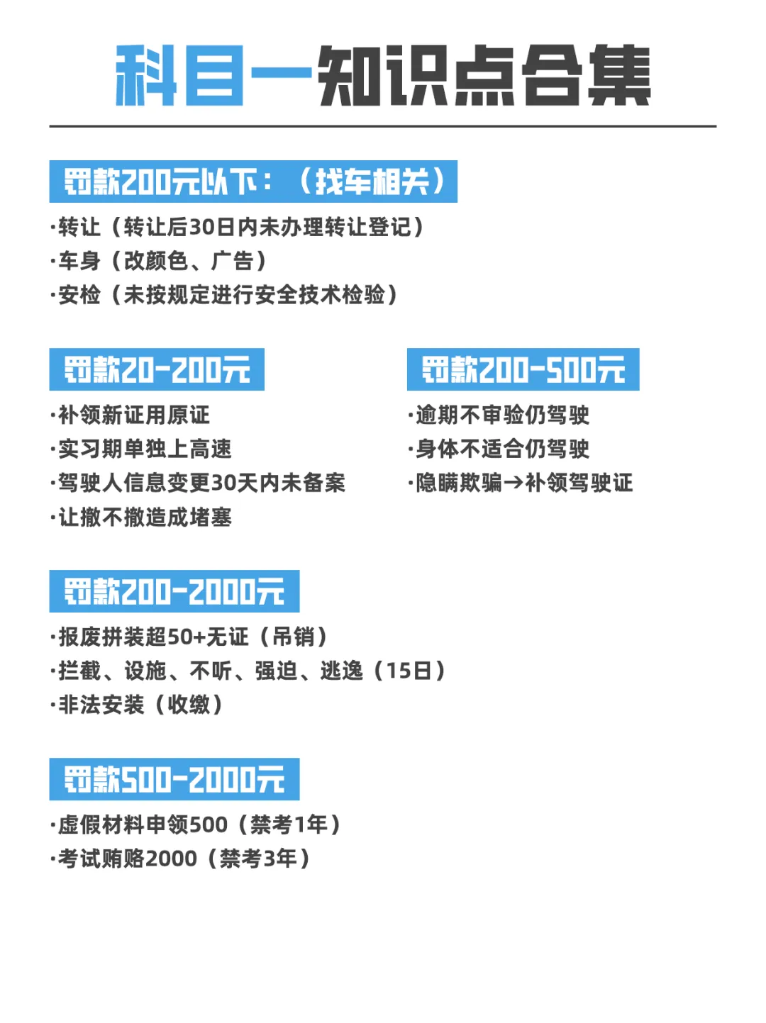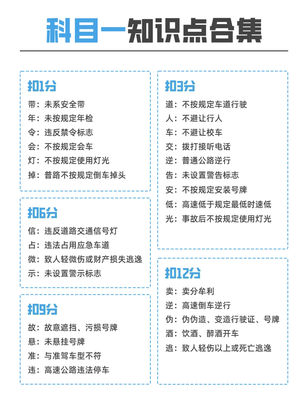 背完,再去刷题,然后去做模拟考试检验一下,查漏补缺,科一稳定90+! 需要重点记忆的科目一知识点口诀如下驾考科目一的考试题型判断题+单选题,单选题比例较大。科四有多选,科目一没有。所以难度也不大。