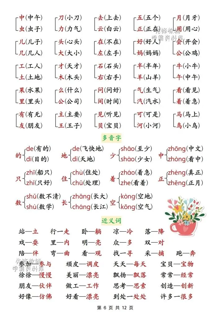 这份一年级上册语文期末复习核心考点汇总真的太全了,共12页,都是期末复习必考知识点,全部都整理出来了,家人们赶紧打印出来,考前背一背,期末稳进班级前三!