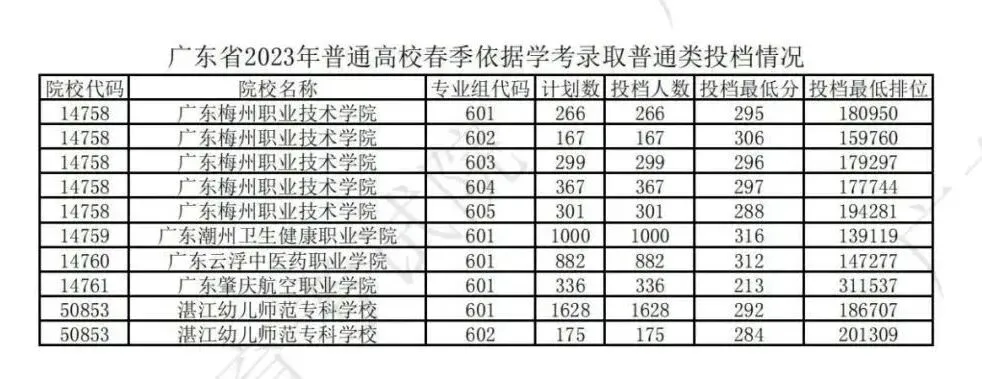 公办最低分是广东汕头幼儿师范高等专科学校601专业组,只有257分(非中外合办),比上一年年暴跌17.7万排位!!