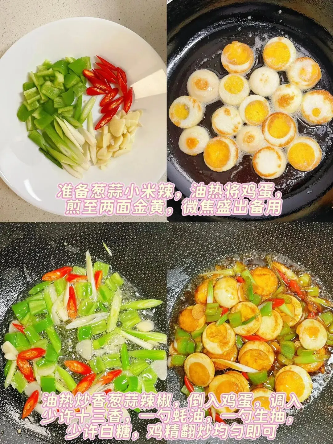 鸡蛋6个、青椒1个、小米辣适量、葱适量、蒜适量、淀粉少许、十三香少许、蚝油1勺、生抽1勺、白糖少许、鸡精少许