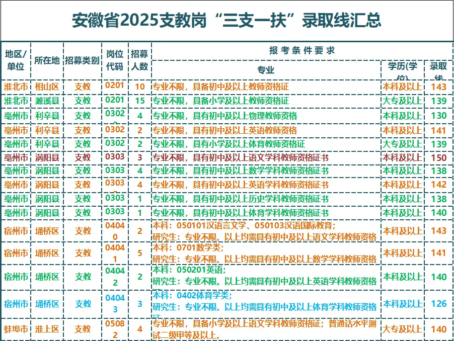 2025年安徽三支一扶全省支教岗录取线汇总