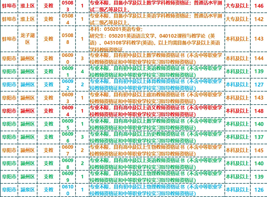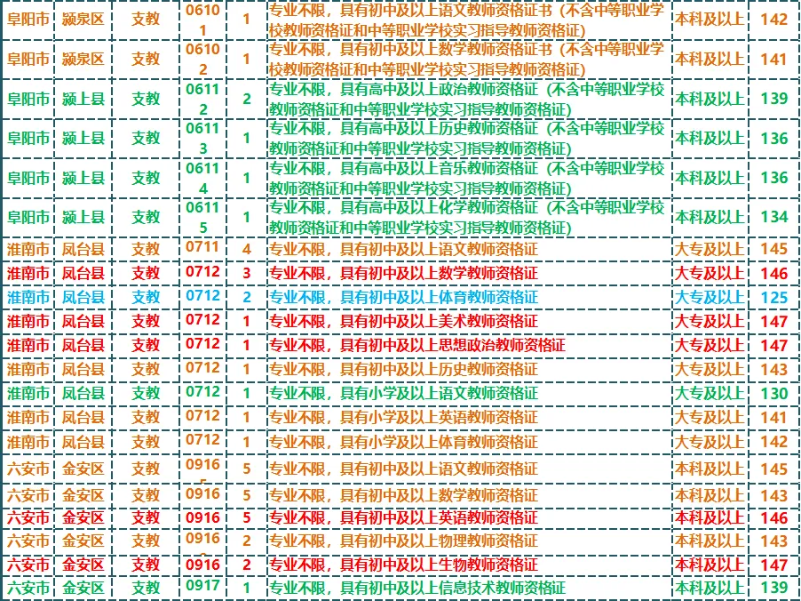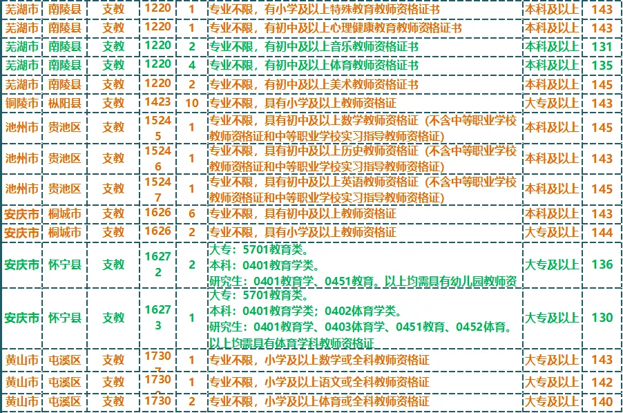 2024年安徽三支一扶支教岗入围分合集