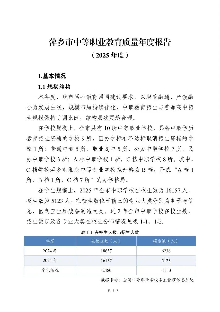 >升学人数3343人!萍乡市中等职业教育质量报告(2025年度)