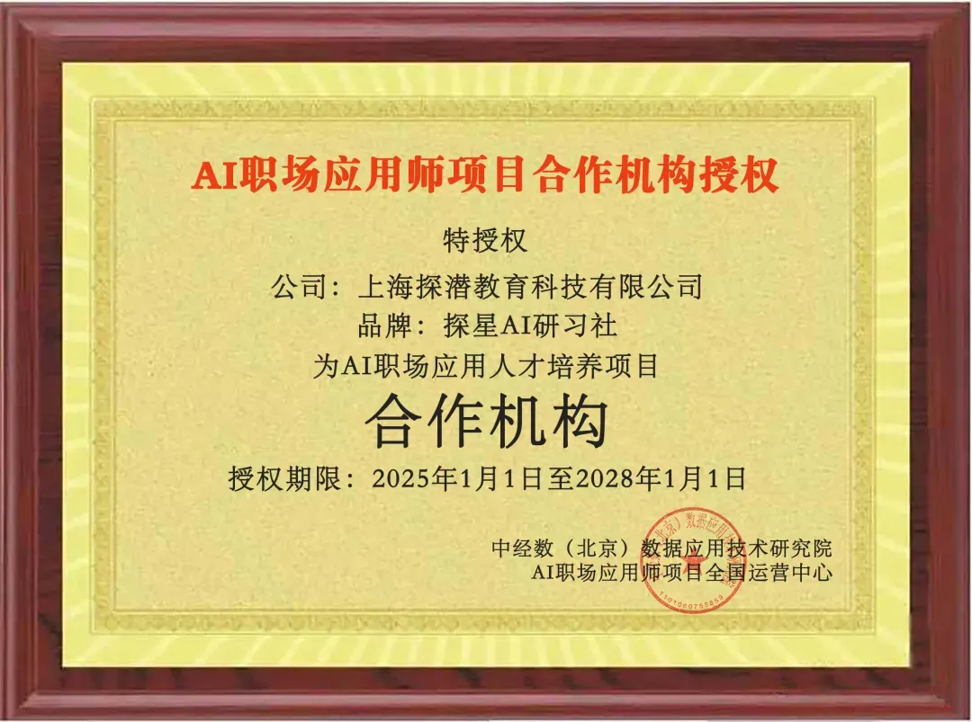 探星AI研习社,由各行业各岗位的职场实战专家们发起,旨在通过专业的培养计划,提升职场人在人工智能领域的专业知识和技能水平,助力人工智能时代的职场「复合型人才」的学习和发展。目前,我们和官方考试单位合作超过3年了,获得优秀合作机构的称号,助力同学学习和备考,口碑保障。作为授权合作机构,我们会为同学们提供课程、刷题、答疑、督学等陪跑服务,陪跑营期间,同学是“主角”,我们专家和助教们是陪跑团队,最后助力同学们可以高效的获得技能提升,并获得证书。 如何报名