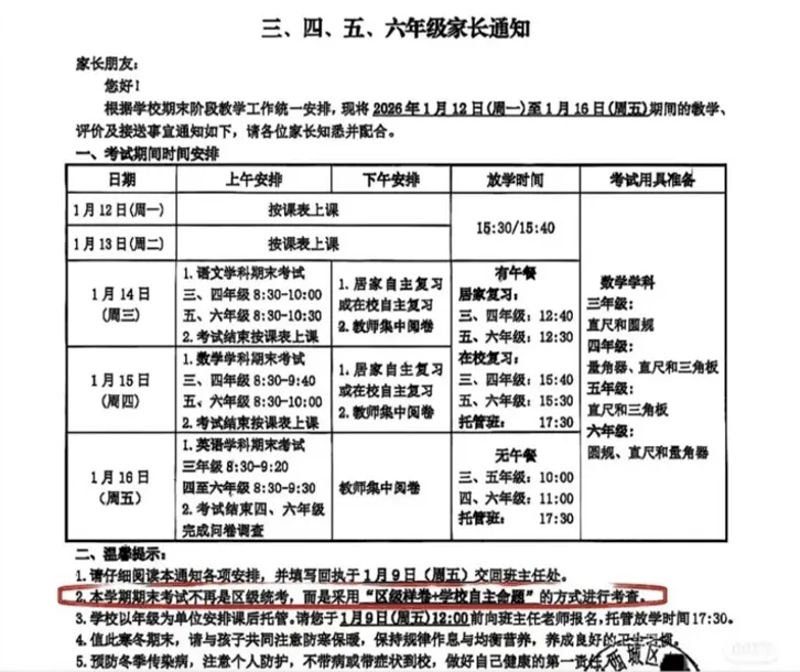别急着反驳,仔细看看,其实这个通知并不是让不要考试,而是避免过度频繁考试,过度强调排名,让学习变成一味追求分数的鱿鱼游戏。假如连小学的期末考试都要全区统考,那么各校就要拿成绩排位,学校就会如临大敌,一模再模十八摸,把整个教学过程变成应考备战。