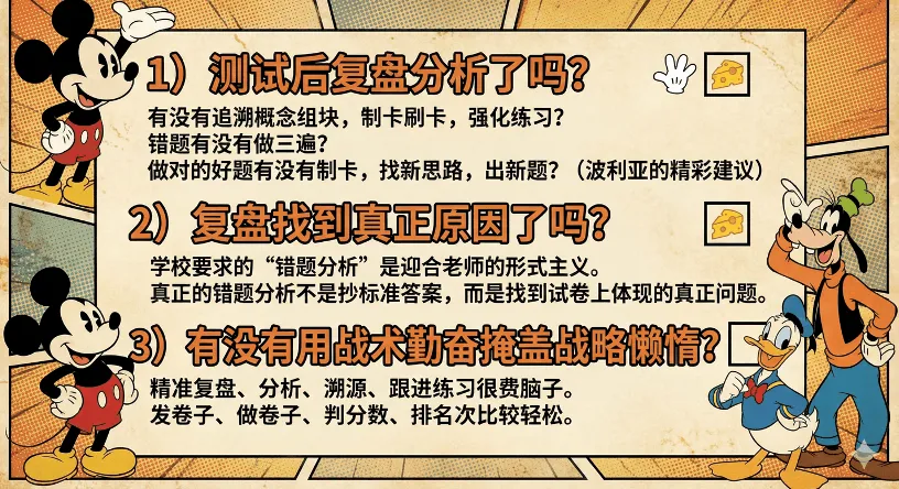 毕竟精准的复盘,分析和溯源,跟进练习,都很费脑子,而发卷子一套套做,然后判分数排名次,就比较轻松了。