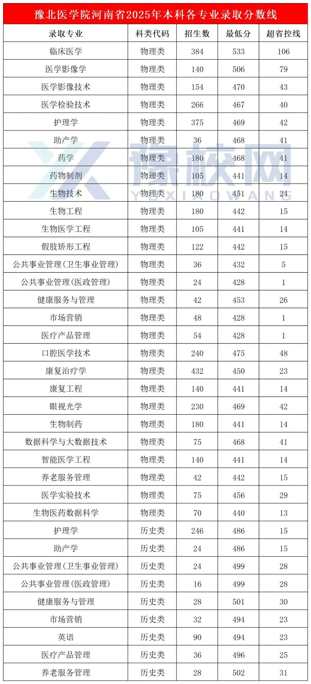 >豫北医学院2025年河南省本科批录取分数线