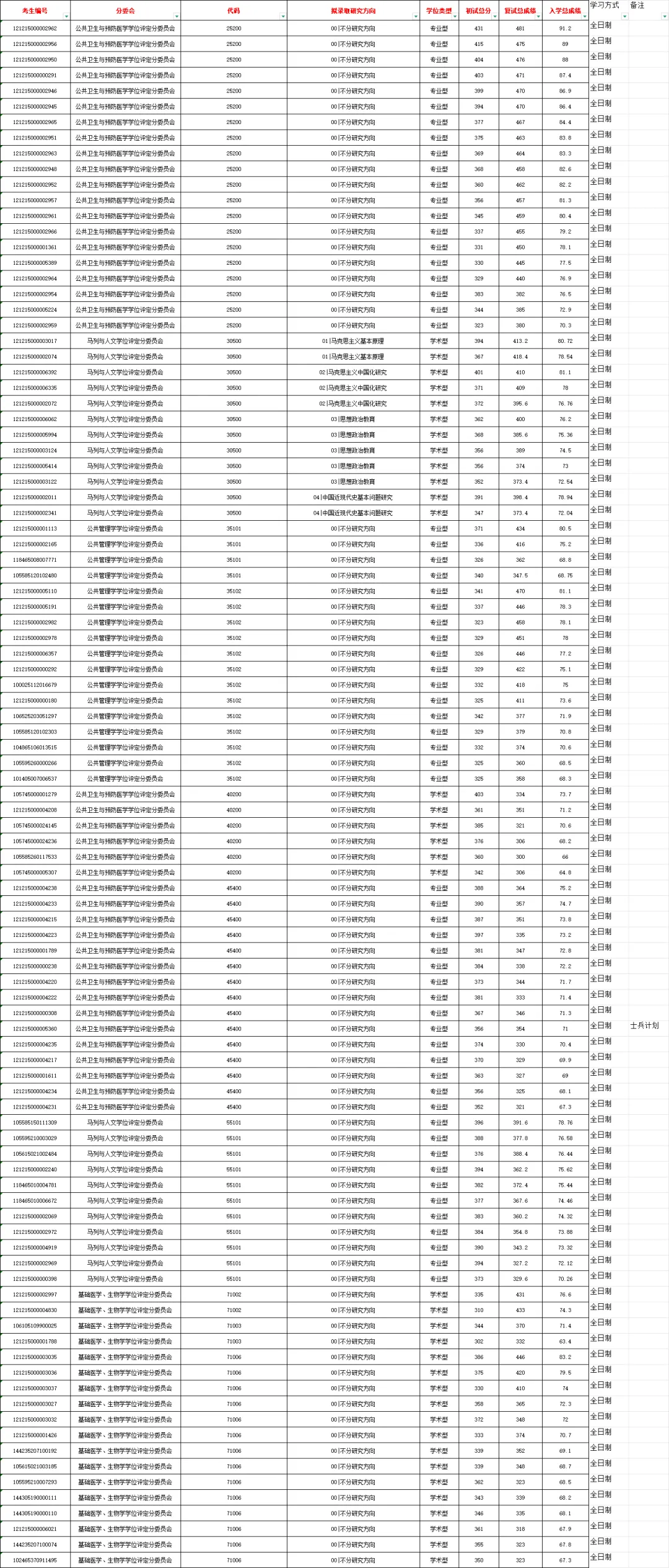 南方医科大学2024-2025考研拟录取名单(含初复试分数)