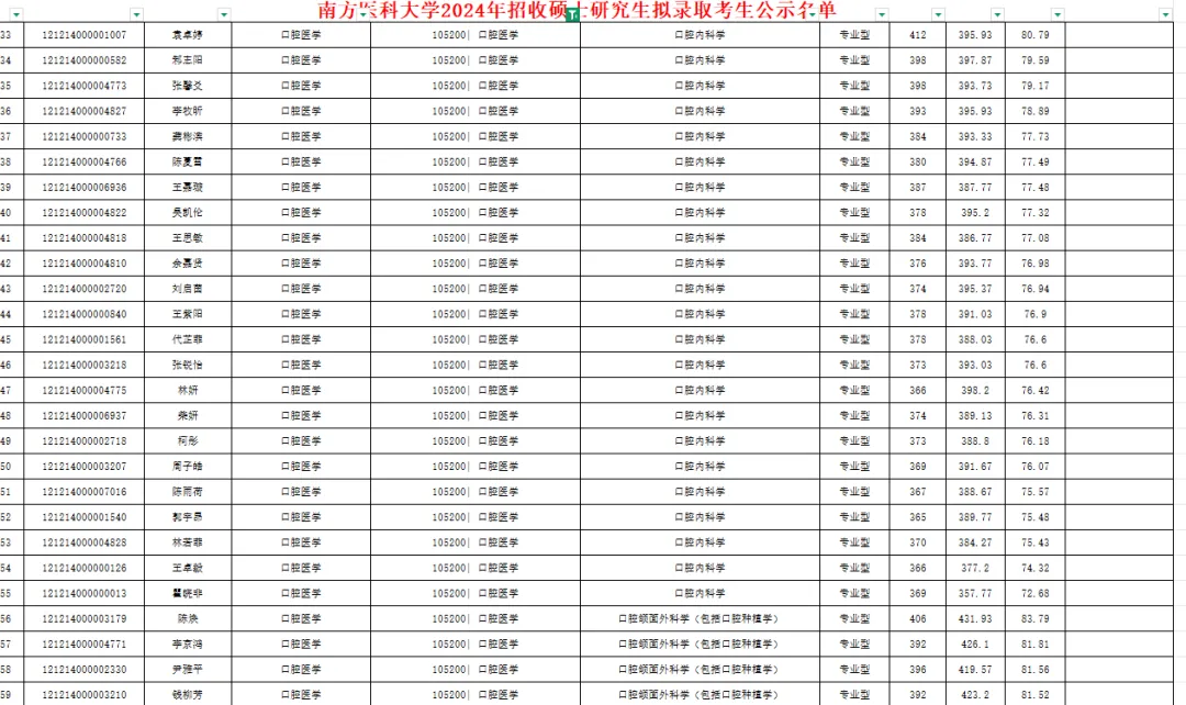 本期给大家分享的是南方医科大学2024-2025考研拟录取名单。