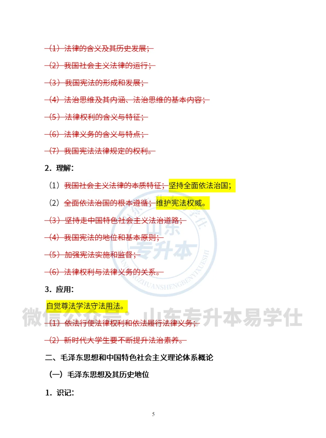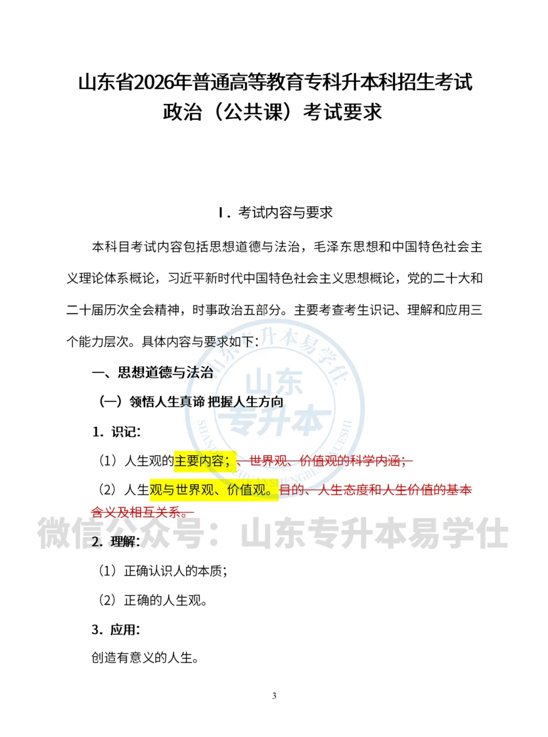 考试内容有所更新,主要涉及“思想道德与法治”与“时事政治”两部分。具体修改细节已整理如下(黄色底色为新大纲新增或改动内容,红色划线部分为删减部分。),请同学们及时对照新大纲,合理安排复习重点。