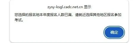 一旦出现此提示,意味着你原定的考区席位已全部占满。