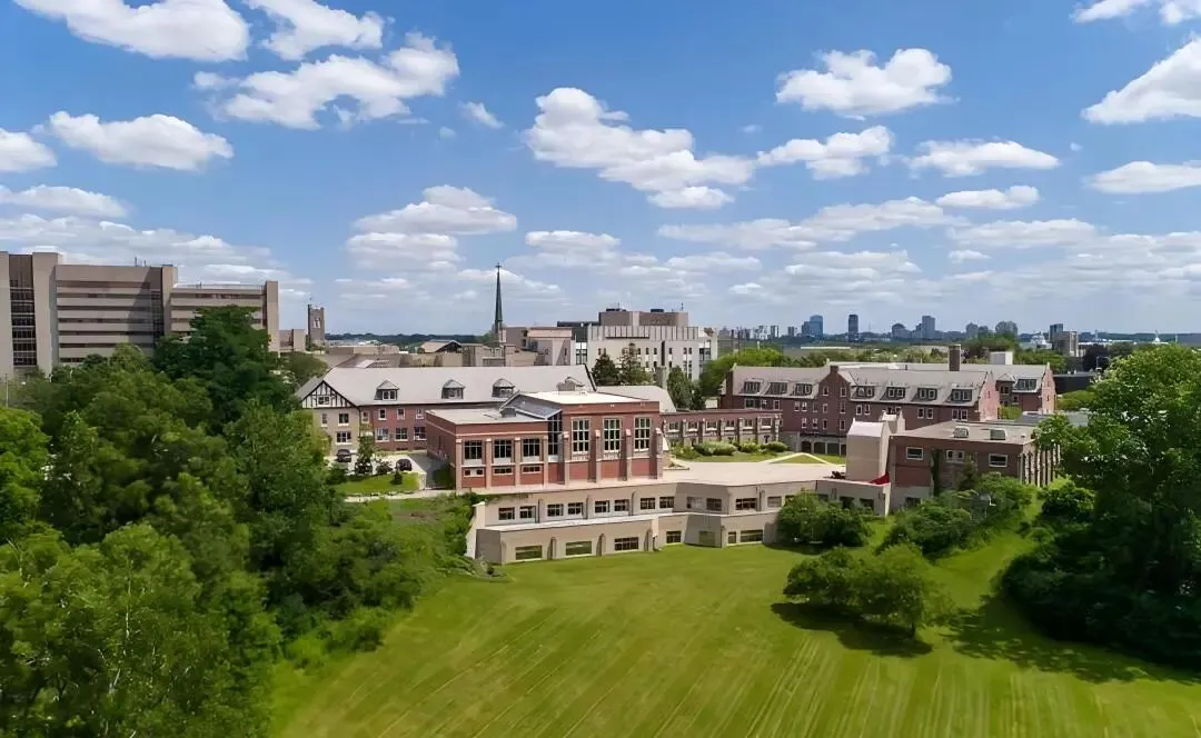 多伦多市区名校,QS全球第358位,商科与法律强势。舒立克商学院在北美声誉卓著,金融、市场营销实习机会丰富,法律学院争端解决专业特色鲜明。支持“语言+本科”双录取,985/211 学生 GPA3.0 即可申请,总费用约21-30万人民币,性价比突出。