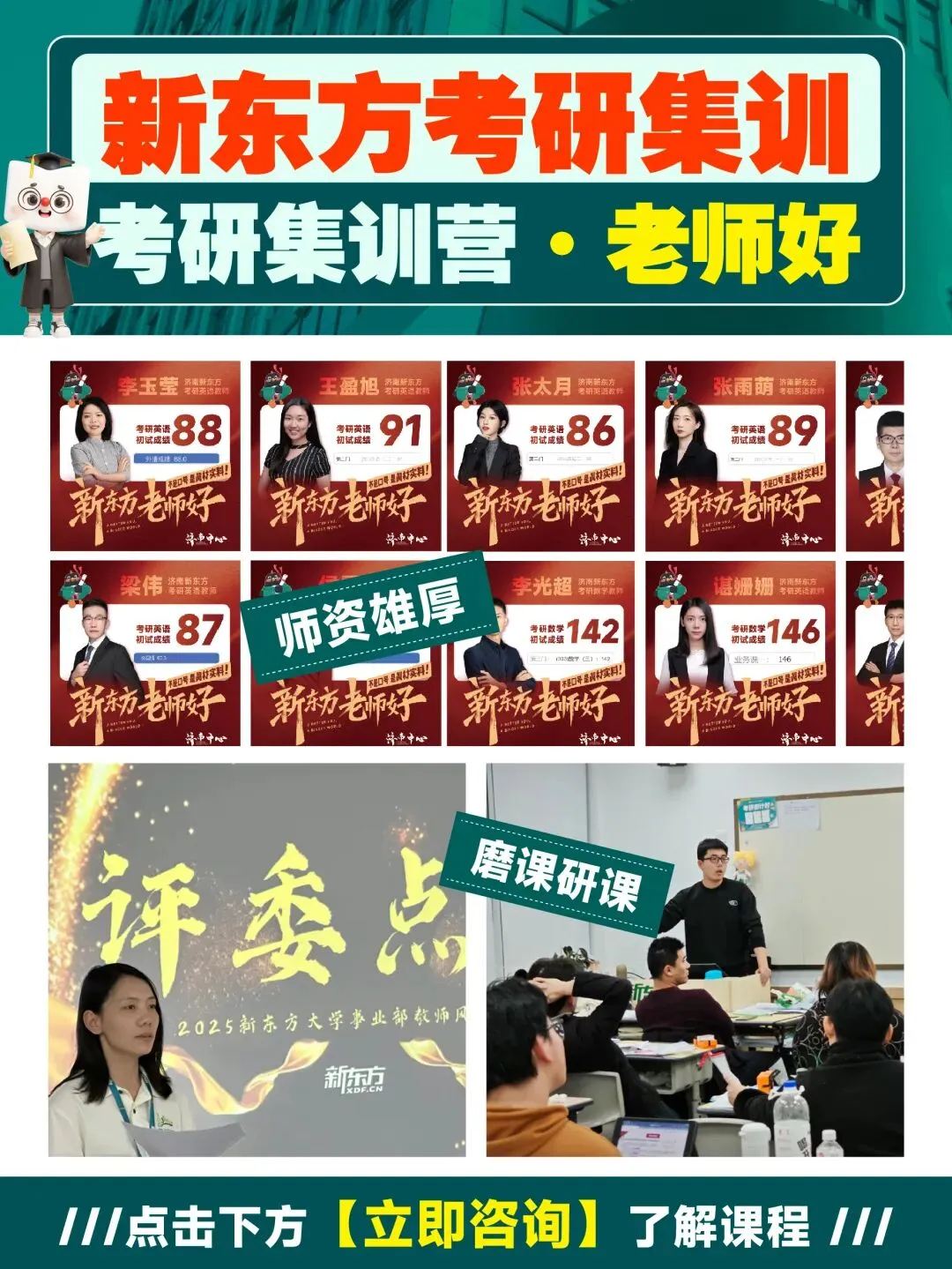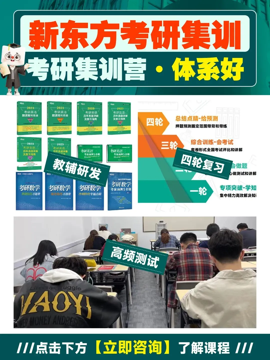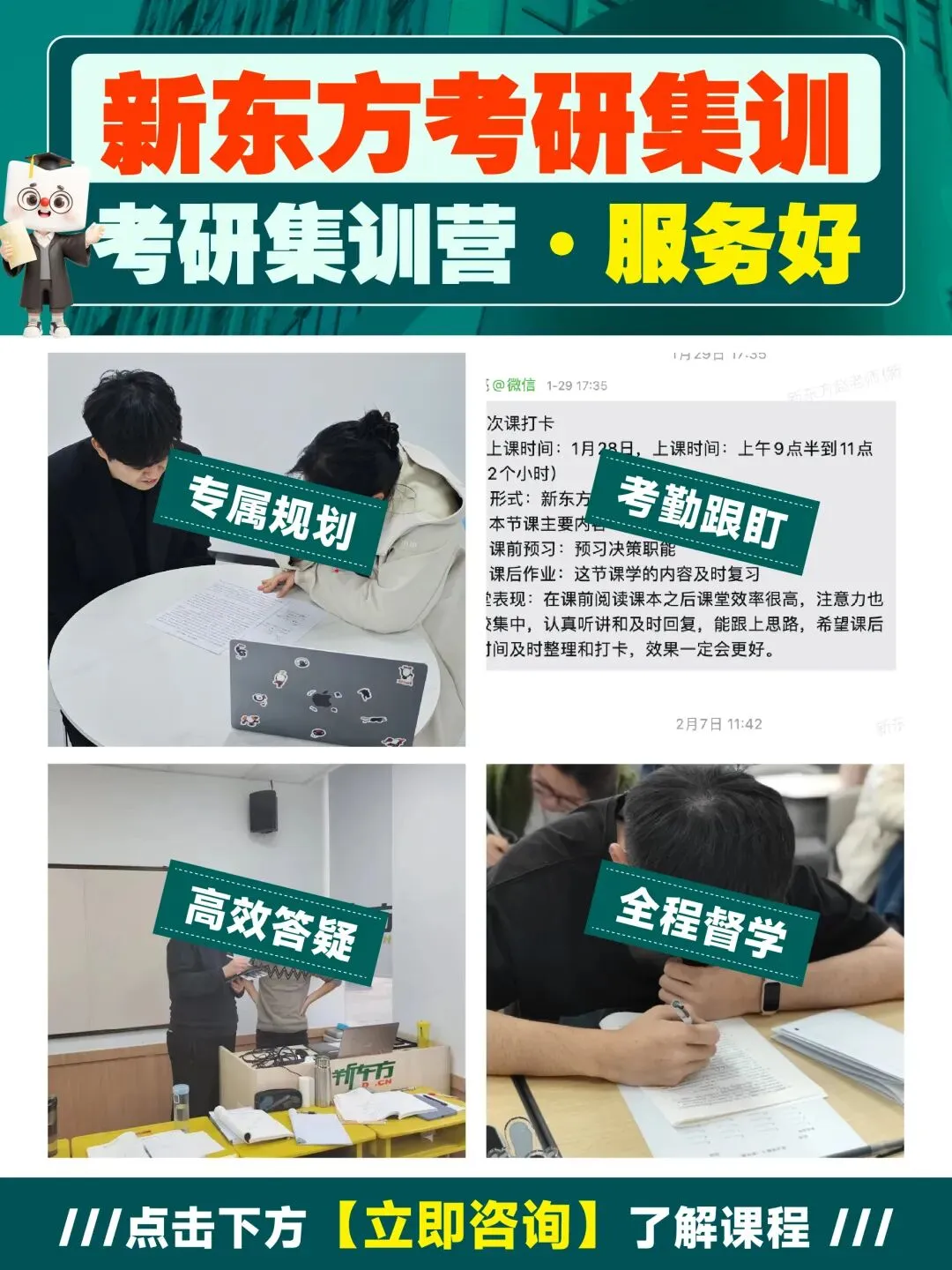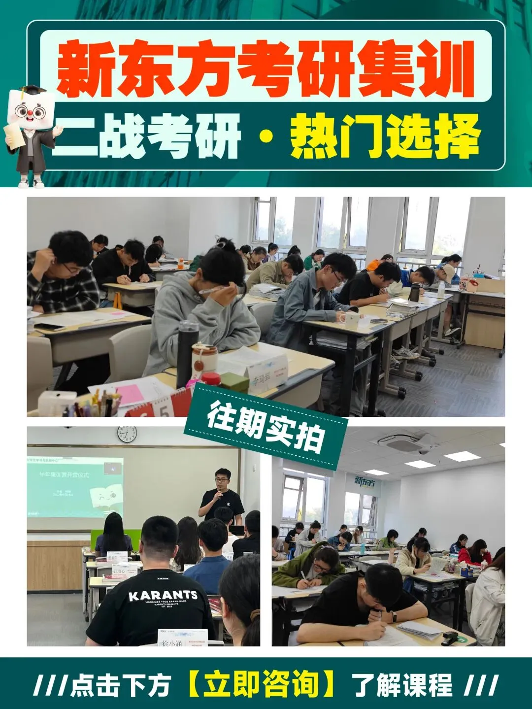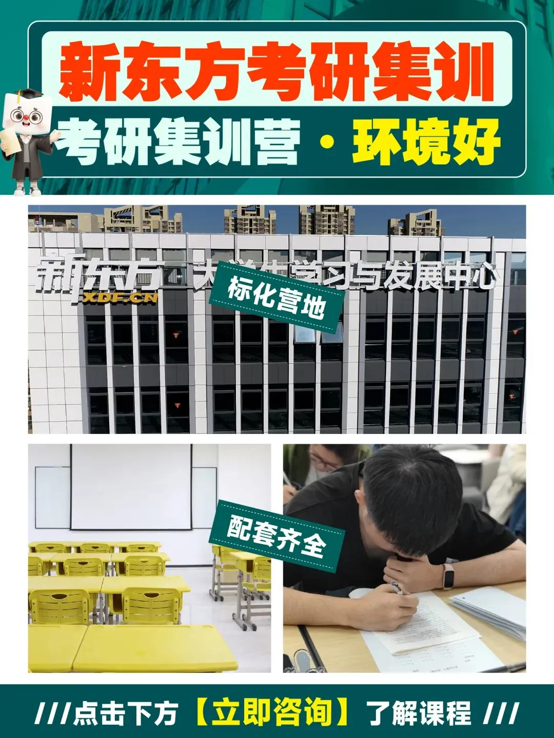 ‼️济南新东方强势推出『27考研全科集训营』‼️🔥目前热招课程:✅27考研:全年集训营、半年集训营、暑假集训营①干净的校区环境: 各校区均有宽敞明亮的大教室,并配备安静整洁的专属自习室、休息区、背书角。冬夏空调给劲,配套设施齐全,打好同学们学习的基本保障。②集训营住宿环境: 公寓式居住标准敞亮四到六人间,独立空调+私人储物柜+独立卫浴+WiFi通通配齐,环境舒适整洁,定期打扫卫生,提供舒适的休息环境③学习服务:四师一体,从前期择校择专业,到上课出勤、测试复盘 课后答疑,定期模考,都会有新东方老师全程跟盯!④教学服务:💕新东方全职教师全程跟班授课,100%硕博以上学历。教研赛课,每年都参加考研考试,把握考试动态,精益求精,带来高质量教学,教学经验丰富。💕同时配备有专属学管与助教老师,24小时陪伴+督学,无论是生活问题还是教学指导,都能随时找到他们,帮同学们解决问题,消除各种后顾之忧,调节疏导备考紧张情绪。💕整个集训期间,还有分阶段的测试与学习报告,及时调整学习状态与规划,加上模拟考场,全心全意助力大家上岸。