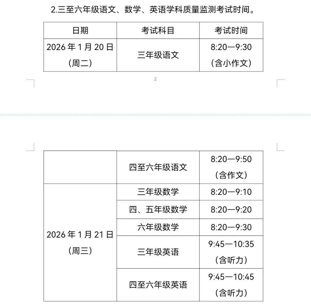 此图为滨海新区小学3-6年级考试时间图↓↓↓