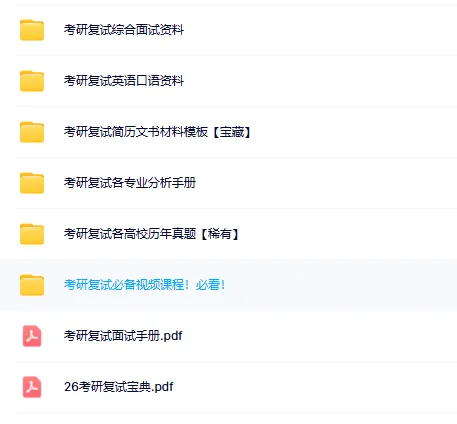 今天给各位26考研的小伙伴发福利啦,复试资料大礼包免费分享给大家,主要是通用的复试准备资料,着手开始准备复试的同学们速来领取!