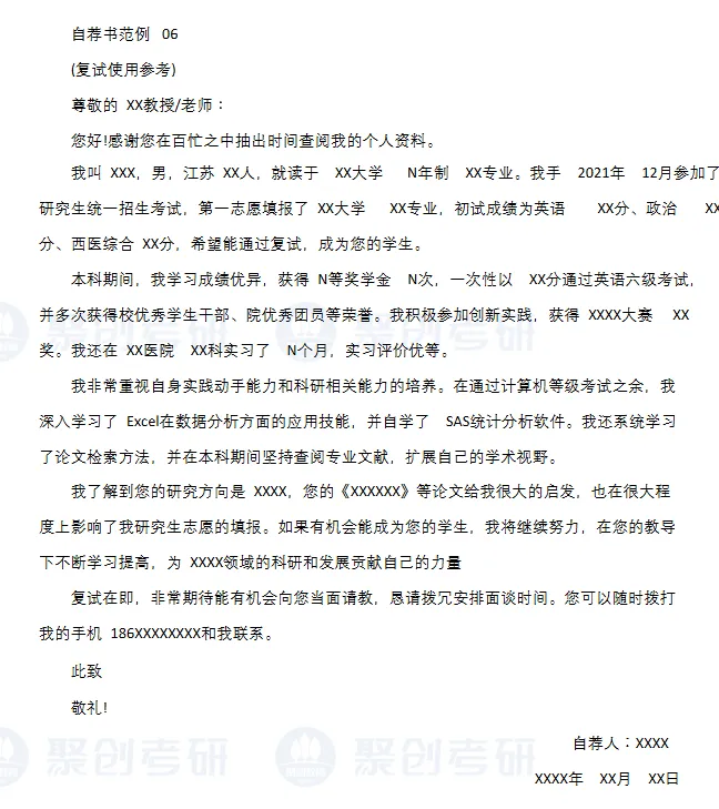 中文的自我介绍:针对不同类型的同学给出了对应的参考模板:应届考研、跨考考研、二战考研和在职考研