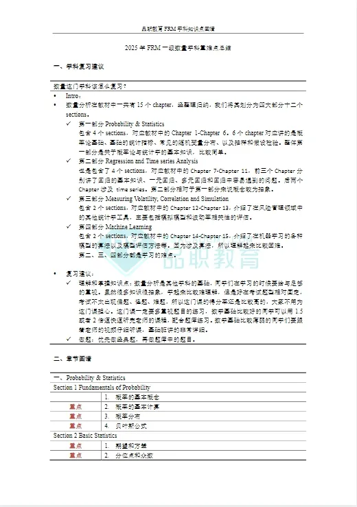 《FRM思维导图》是考试必备的复习资料,方便查缺补漏、加深记忆!此次限时免费领取!时间有限,千万不能错过!