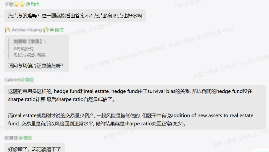 欢迎大家加入我们的FRM学习交流群。除了有保姆级的包含报考、学习、考试各个环节的备考指南外,群内会定期分享行业资讯、实用工具资料包、书籍推荐、大咖分享会、备考答疑、成功学员的经验分享等等信息,FRM干货信息不断发送!扫码添加小管家