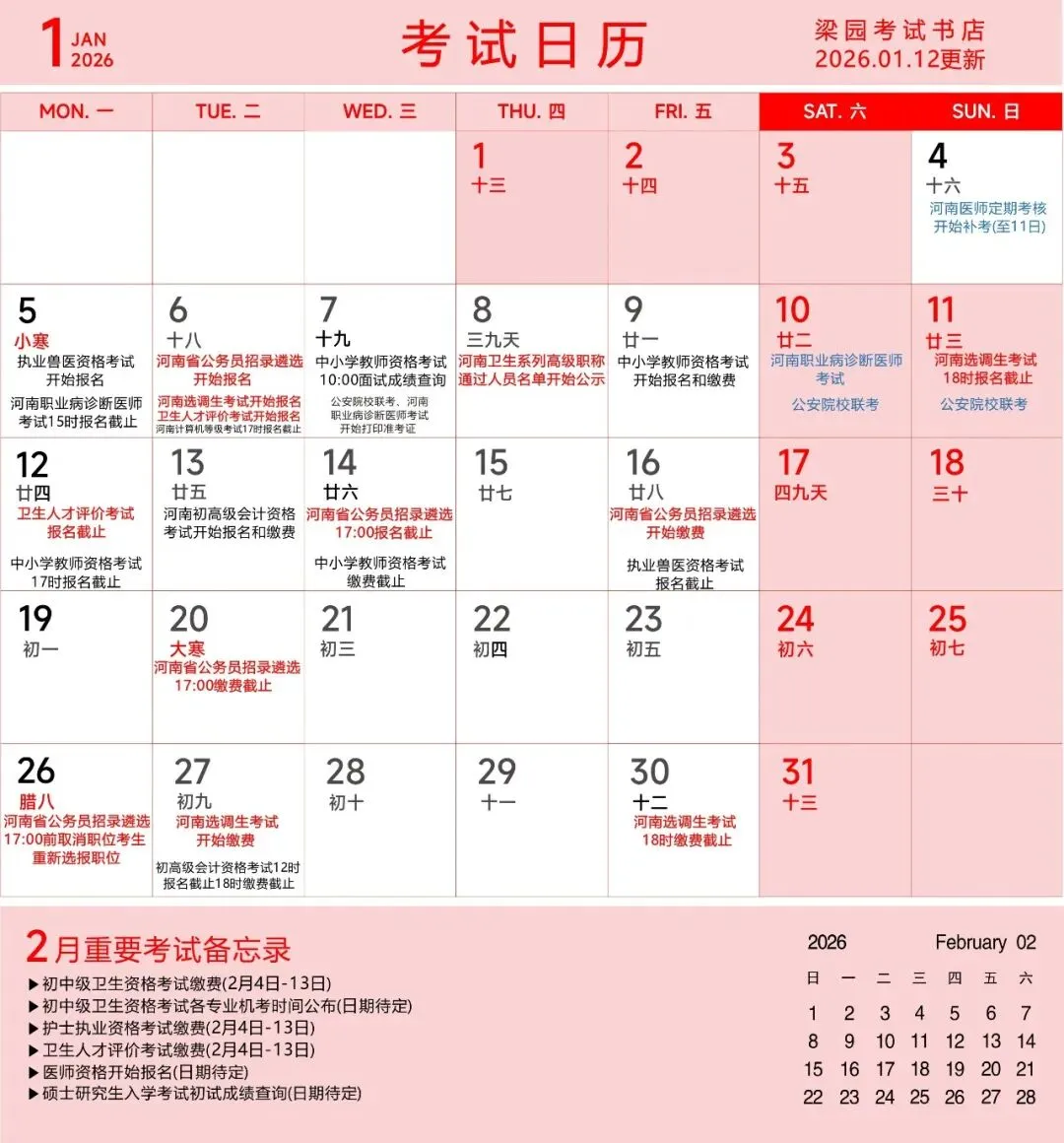 河南考区2026年度初中高级会计专业技术资格考试考务日程安排及有关事项的通知