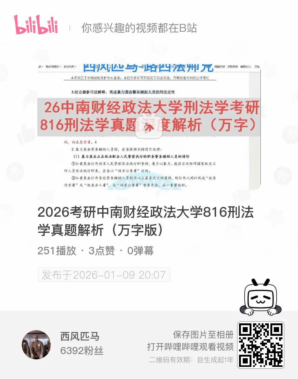 26刑法学考研真题完整版视频讲解可扫描下方二维码于b站观看: