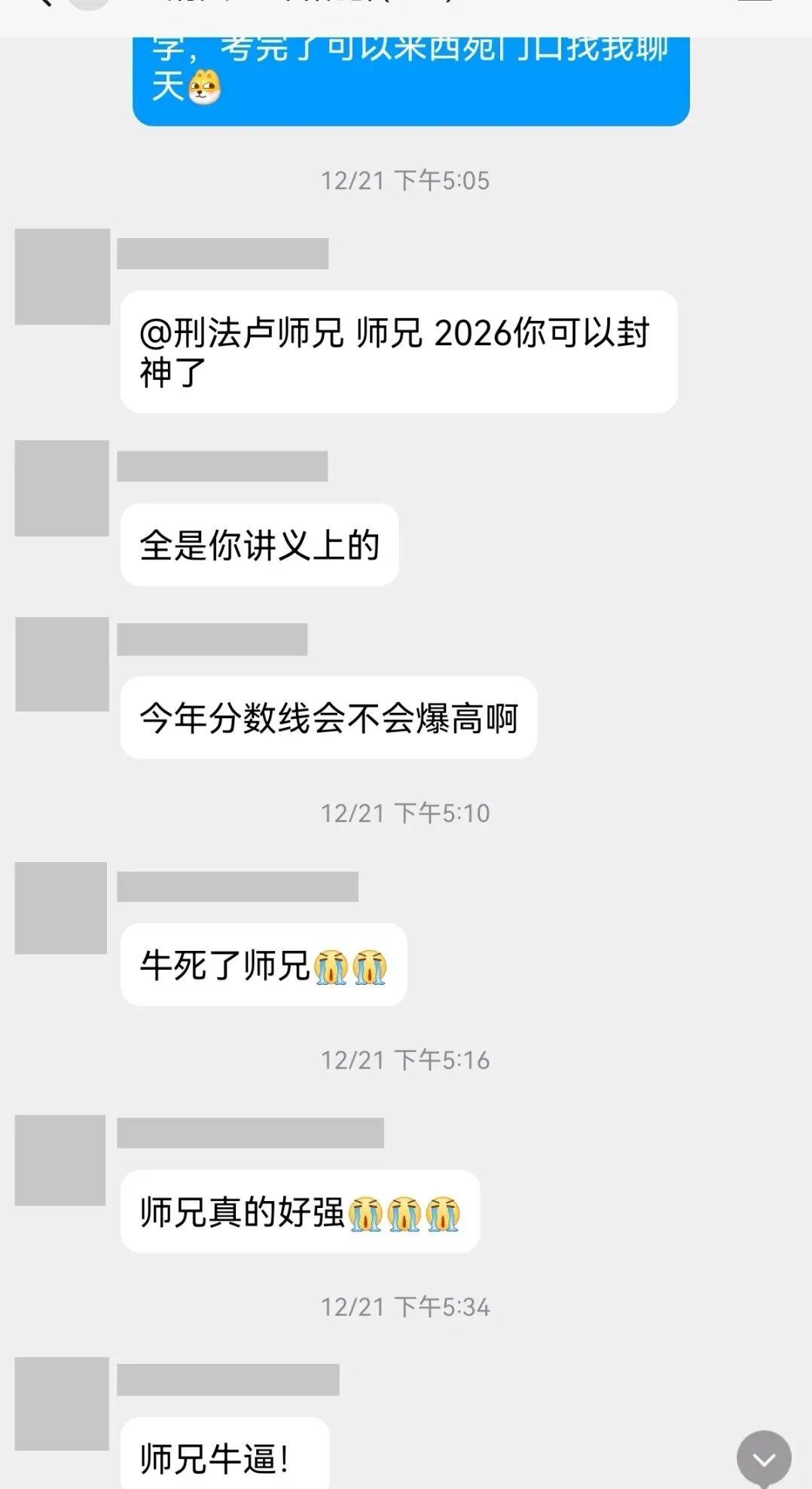 路西法师兄自2020年从事中南刑法考研培训以来,累计辅导上岸考生超过百人,深受广大学员好评;在2025年考研中,辅导上岸考生达到了总录取人数的65%,包揽总成绩前10名中的7名,以及6名130+高分考生,另有近20名考生达到125+。