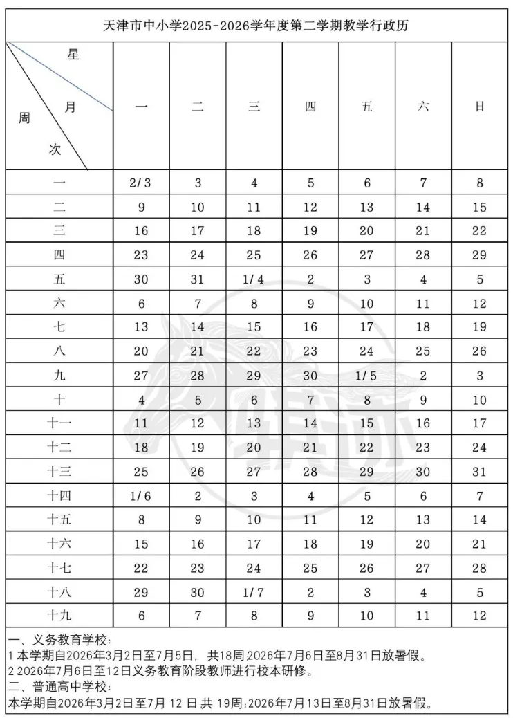 天津市中小学2025-2026学年度