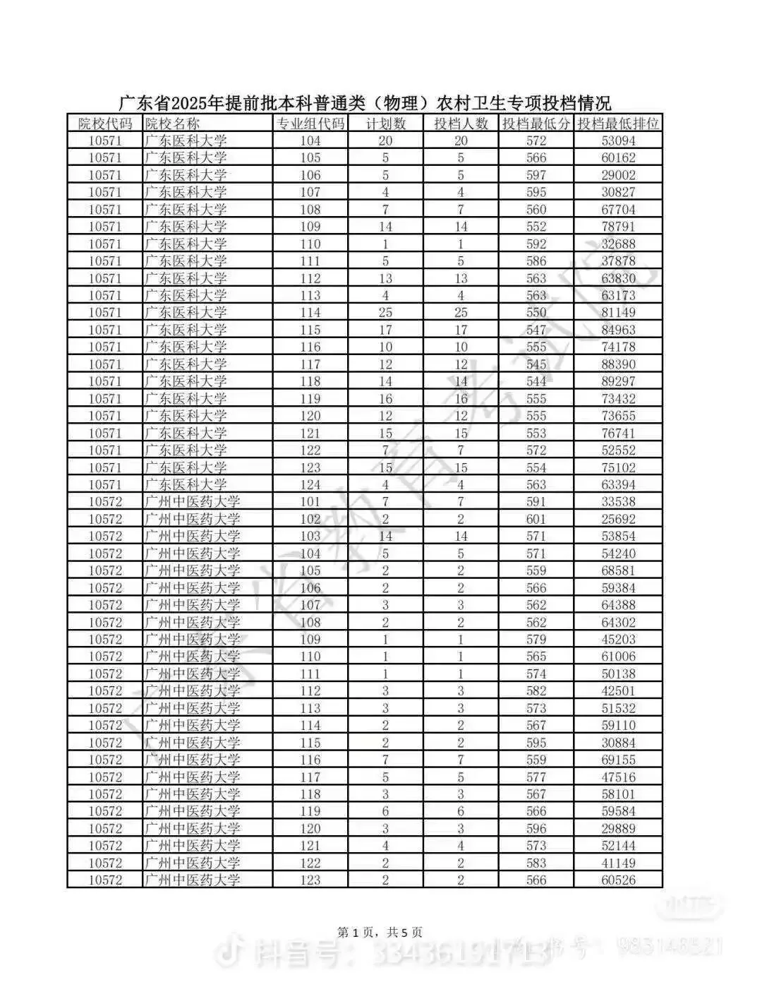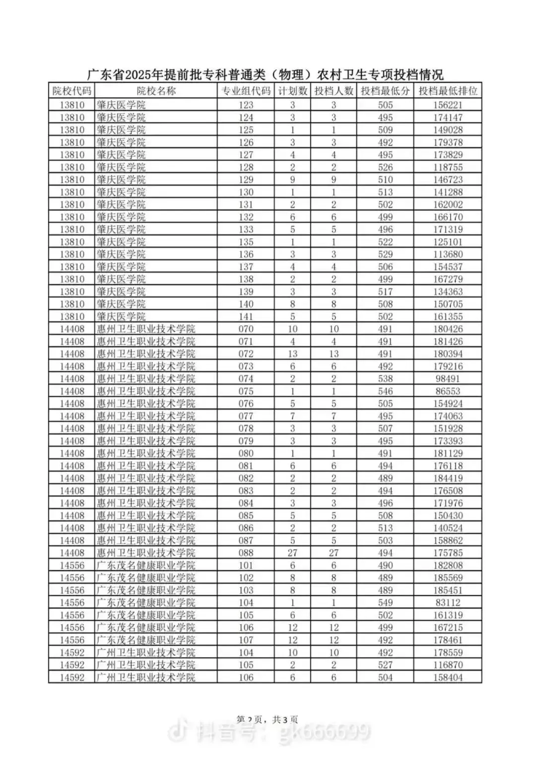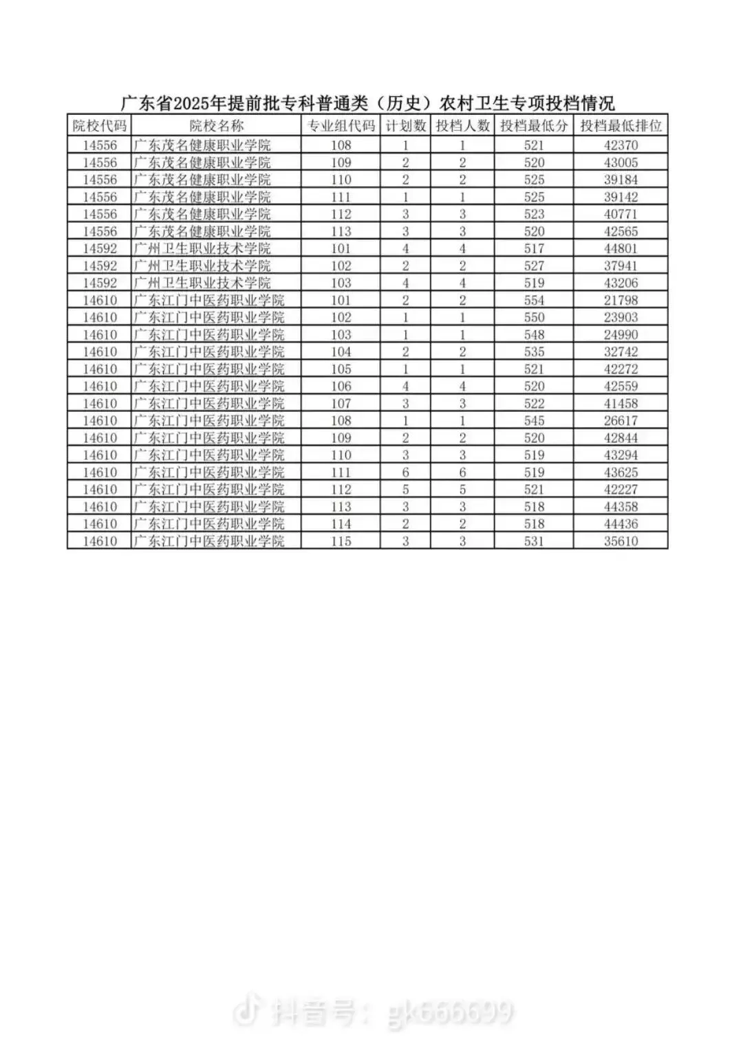 下面是本科和专科批次的卫生专项的学校和录取分数: