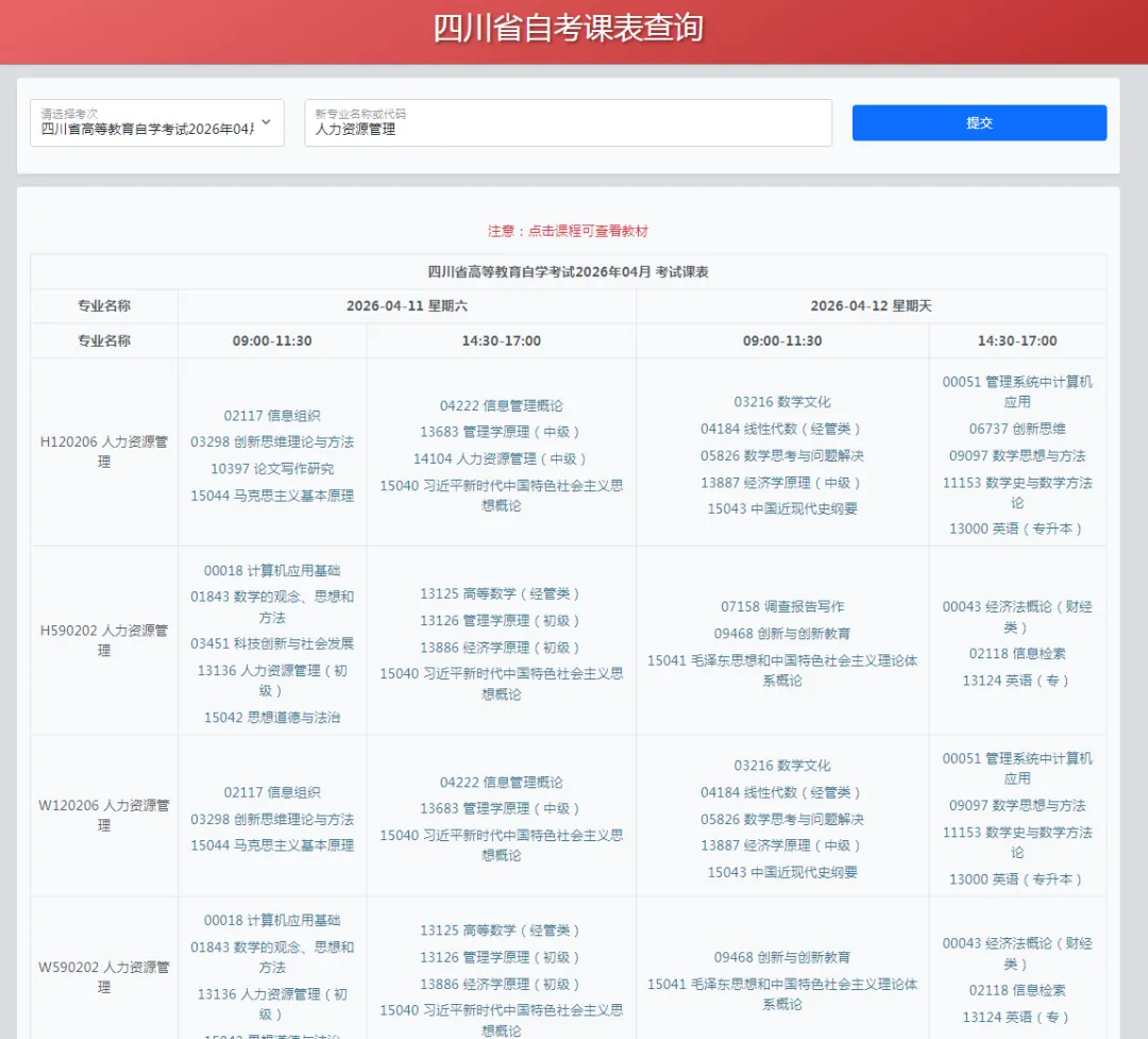 四川省高等教育自学考试2026年4月(261次)考试课表、课程简表已公布,考生可点击https://chaxun.sceeic.cn快速查询。