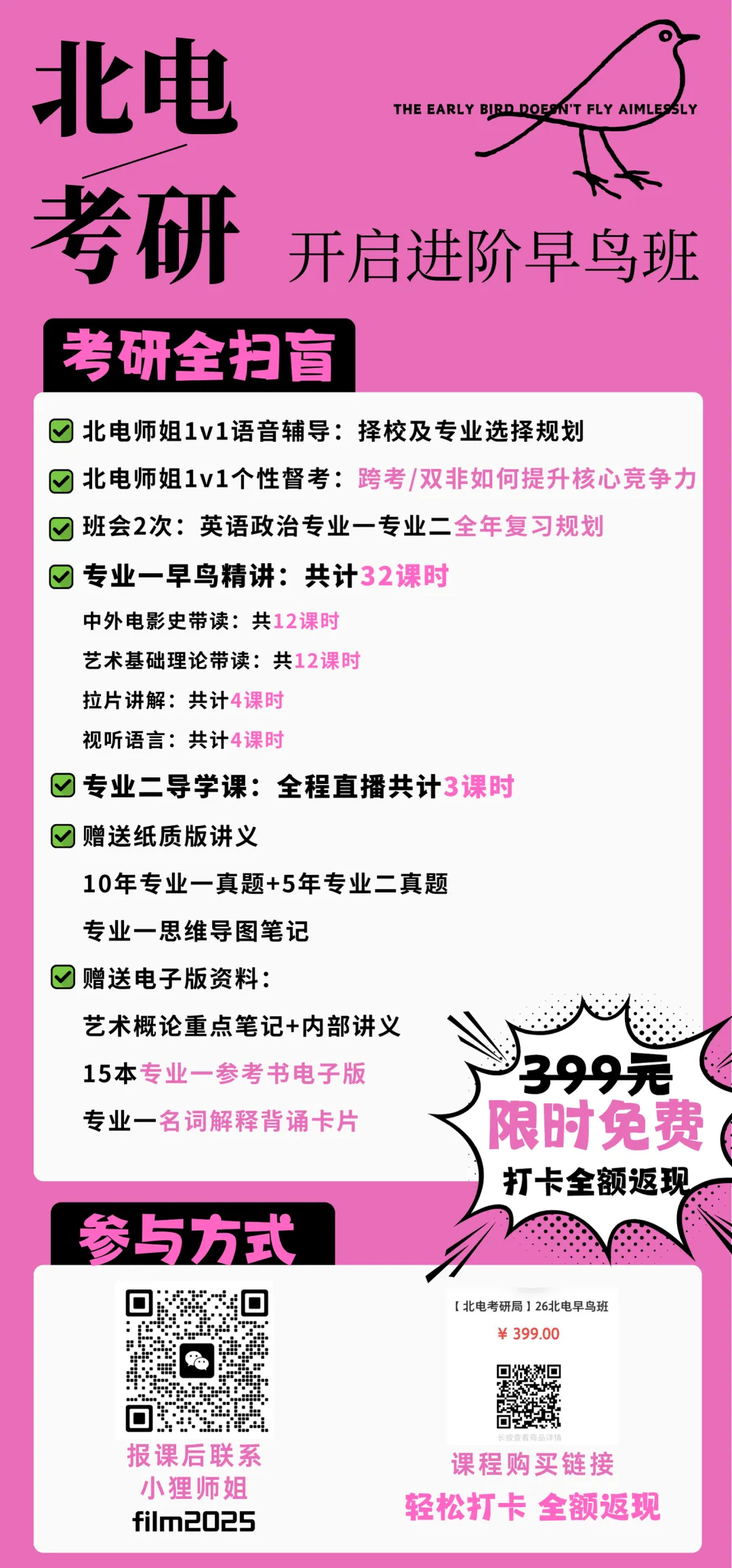 正式发布前已经有很多我们26考研群里的早早鸟小伙伴报名早鸟课程啦(ps:算是一些群内小福利了啦,群里的小伙伴可以获得超一手课程发布通知哦,没加入的小伙伴一定不要错过!早鸟先飞 | 速来!26北电考研免费资料群!)。