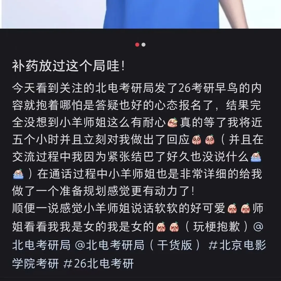电影史论成绩第一上岸,近五年来专业二成绩最高分,师从北电学术大佬,立志成为中国最年轻的长江学者(未来)!以超高专业度和有趣的课程(以及亲切的湖南塑普),收获众多同学的喜爱。