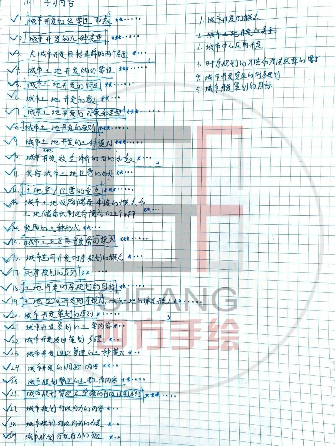 我按照时间顺序将每个城市都整理了一遍,我后期也直接拿着整理的资料开始背诵,这本书比较好背诵,重要的城市平面图自己画一下,理解一下,难的我觉得是后面各个年代的规划理论发展,我也按照时间顺序总结了,确保不会太混乱。这本书也来来回回背了4-5遍,加上你自己整理总结,会有很深的印象,在我8月份第一次背的时候就非常轻松,不会像原理一样很难。