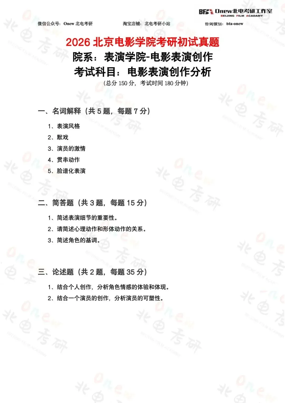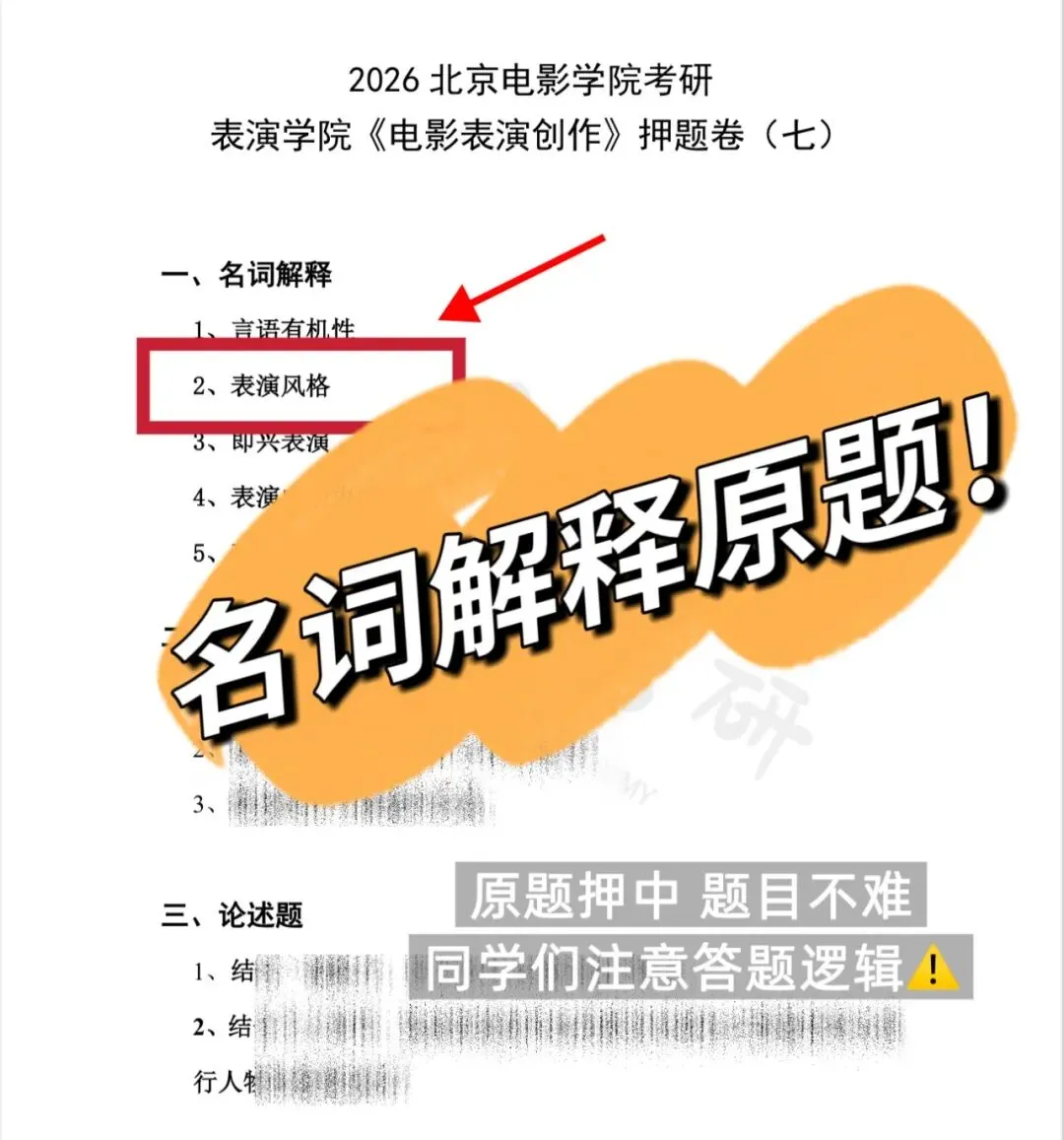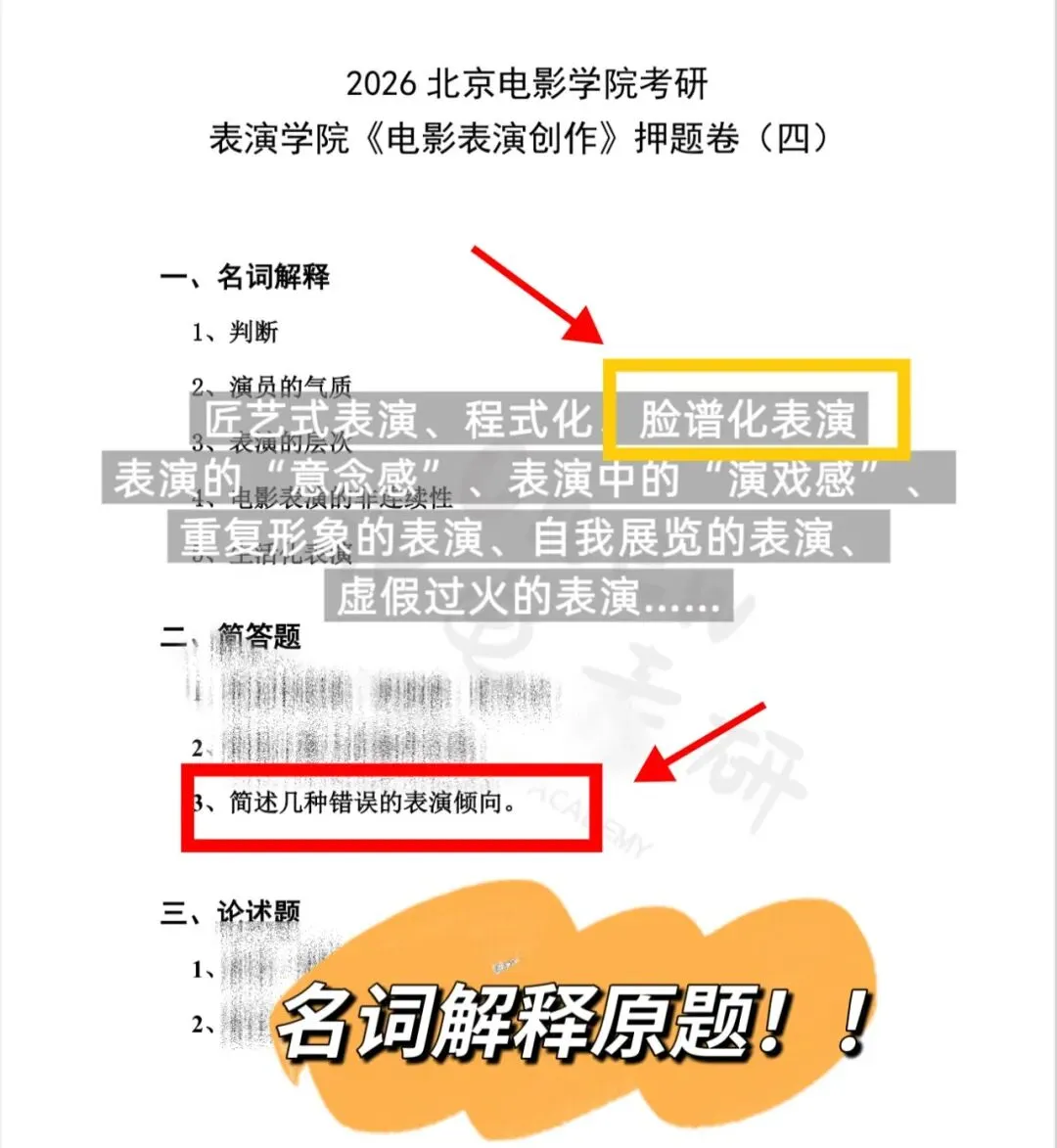 *2026真题分析专栏:今天分析的真题是表演学院-电影表演创作方向的真题