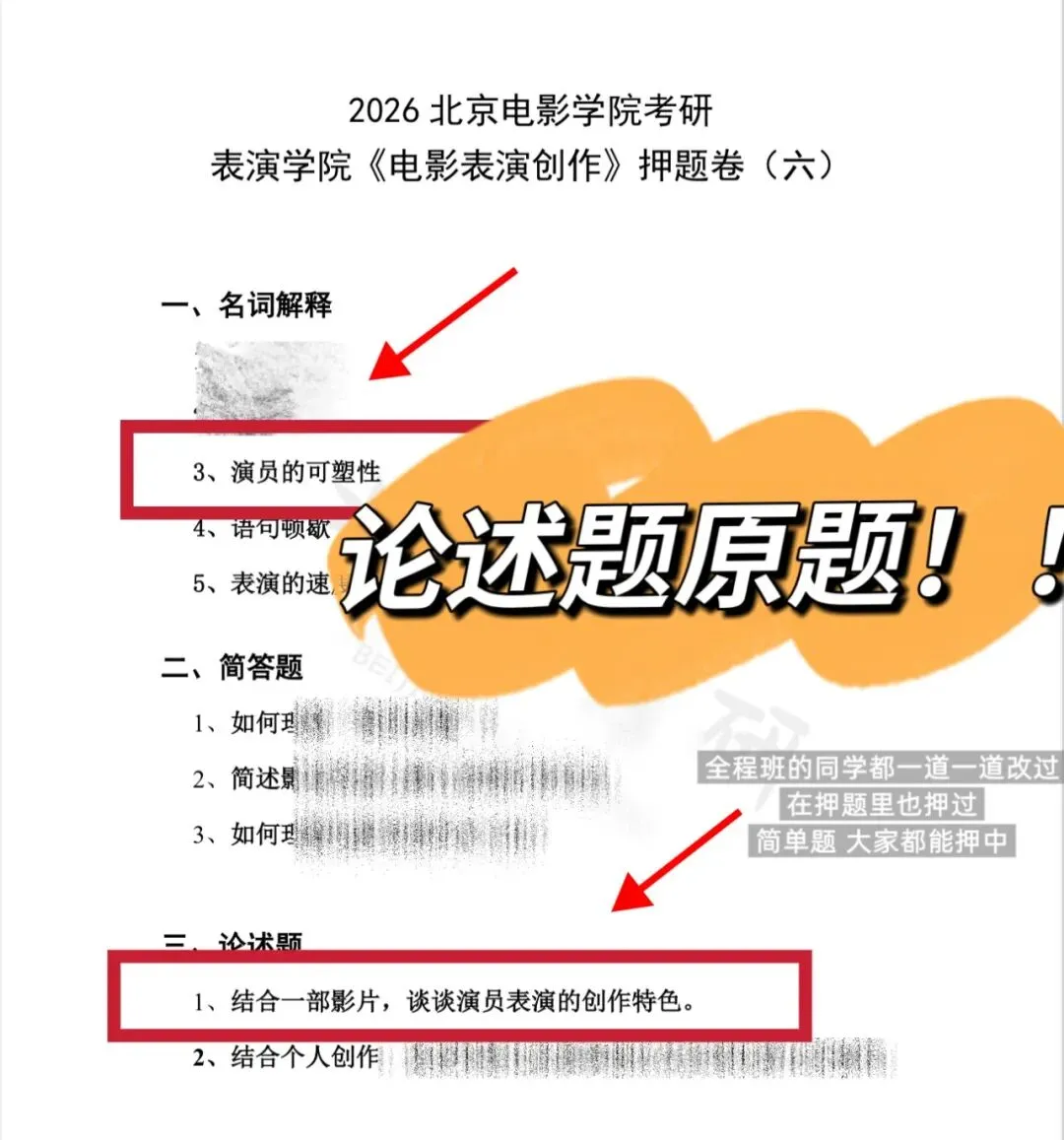 好啦,比起押题准确。师姐更希望大家学的扎实,相信每一个来考研的同学,除了考研上岸的决心以外,也有学习表演的初心。只要学的扎实,不管出什么题型那都是考不住你的!加油!