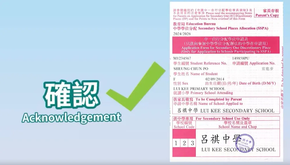 在学校盖上校印、名称及编号后,取回「家长存根」并保留作存照。