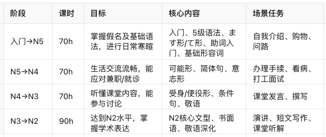 0→N4全阶段覆盖:从假名到N4核心词汇和语法,听说读写全方位提升。