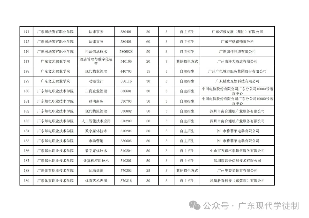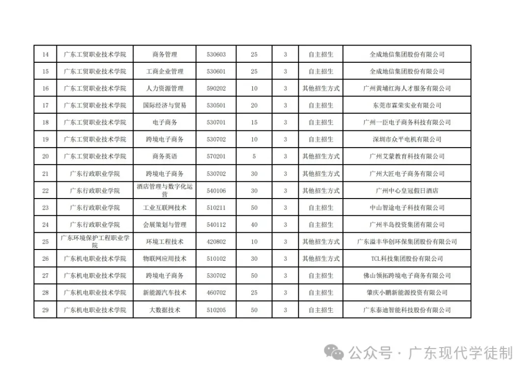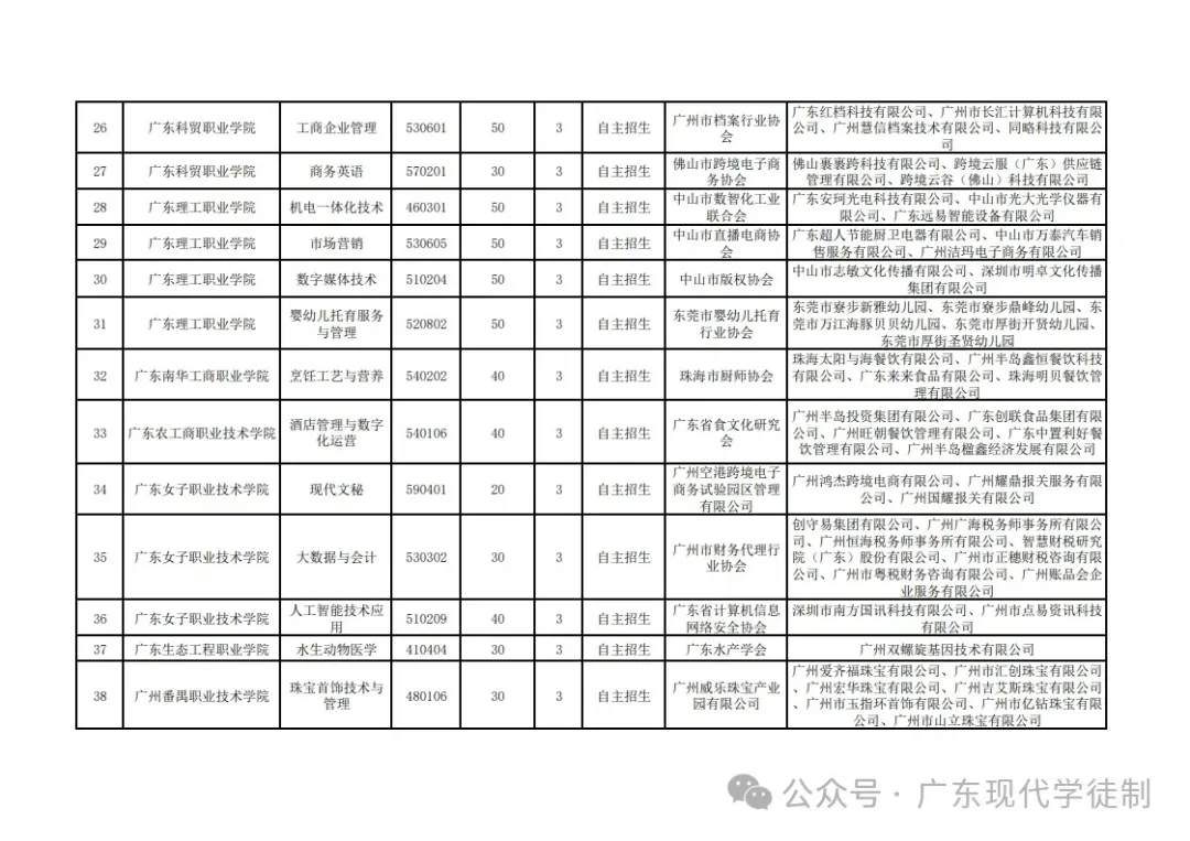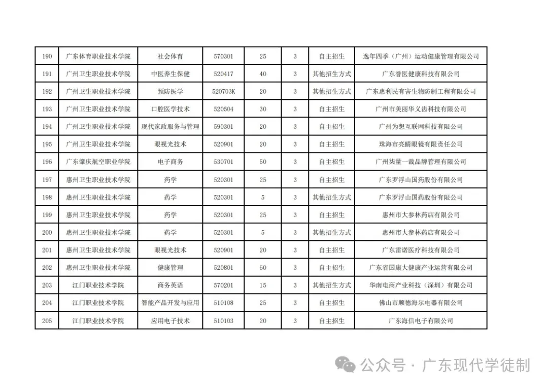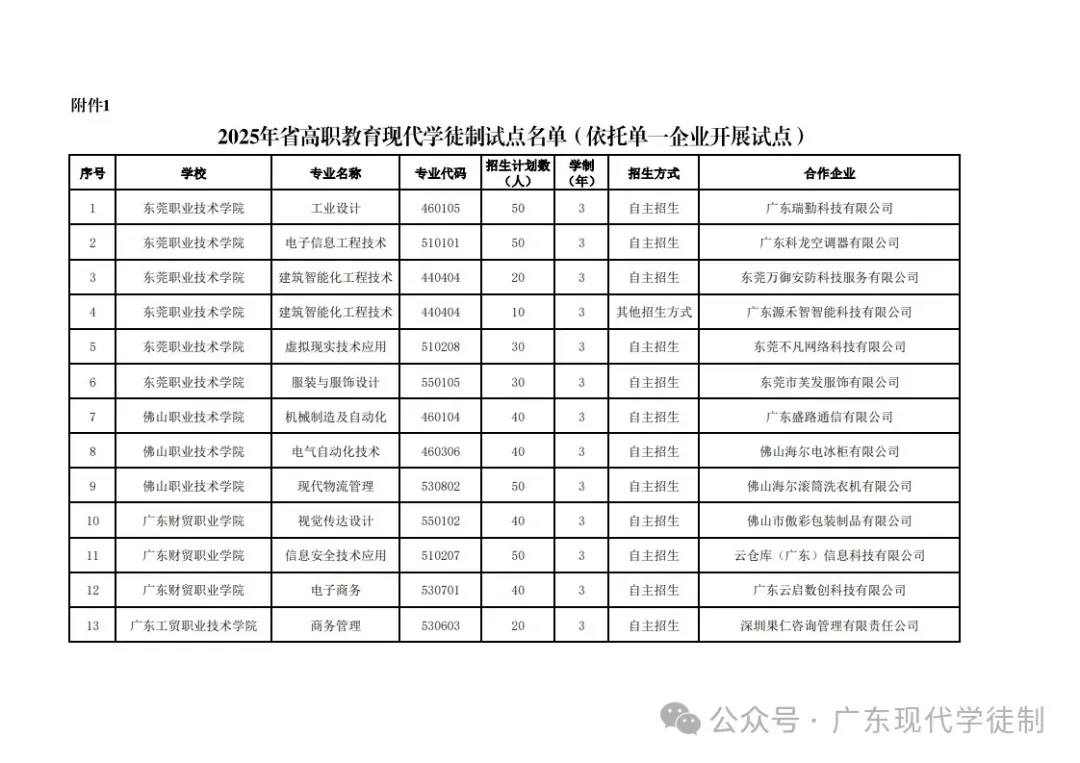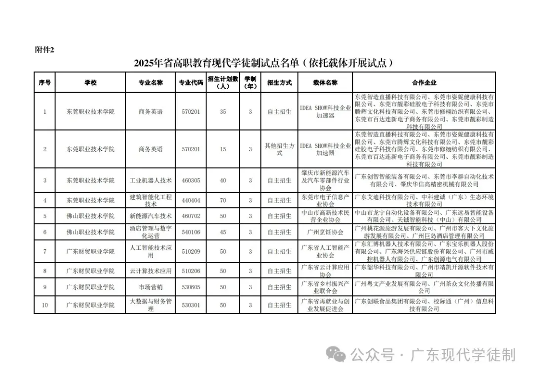2025年广东省现代学徒制院校专业