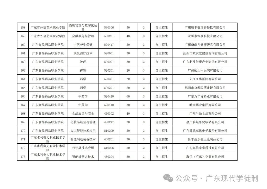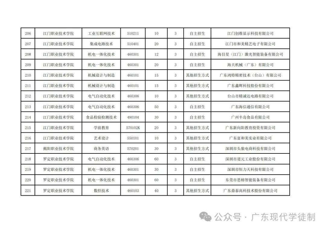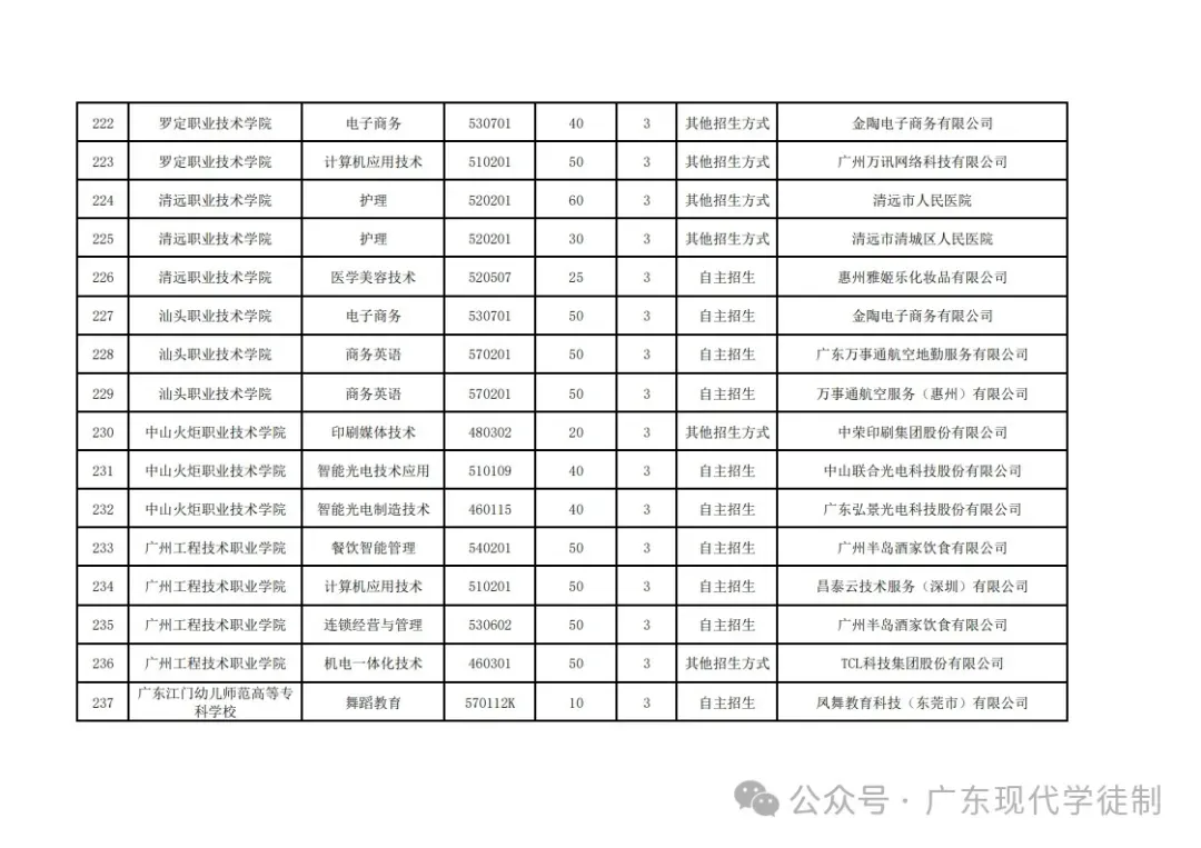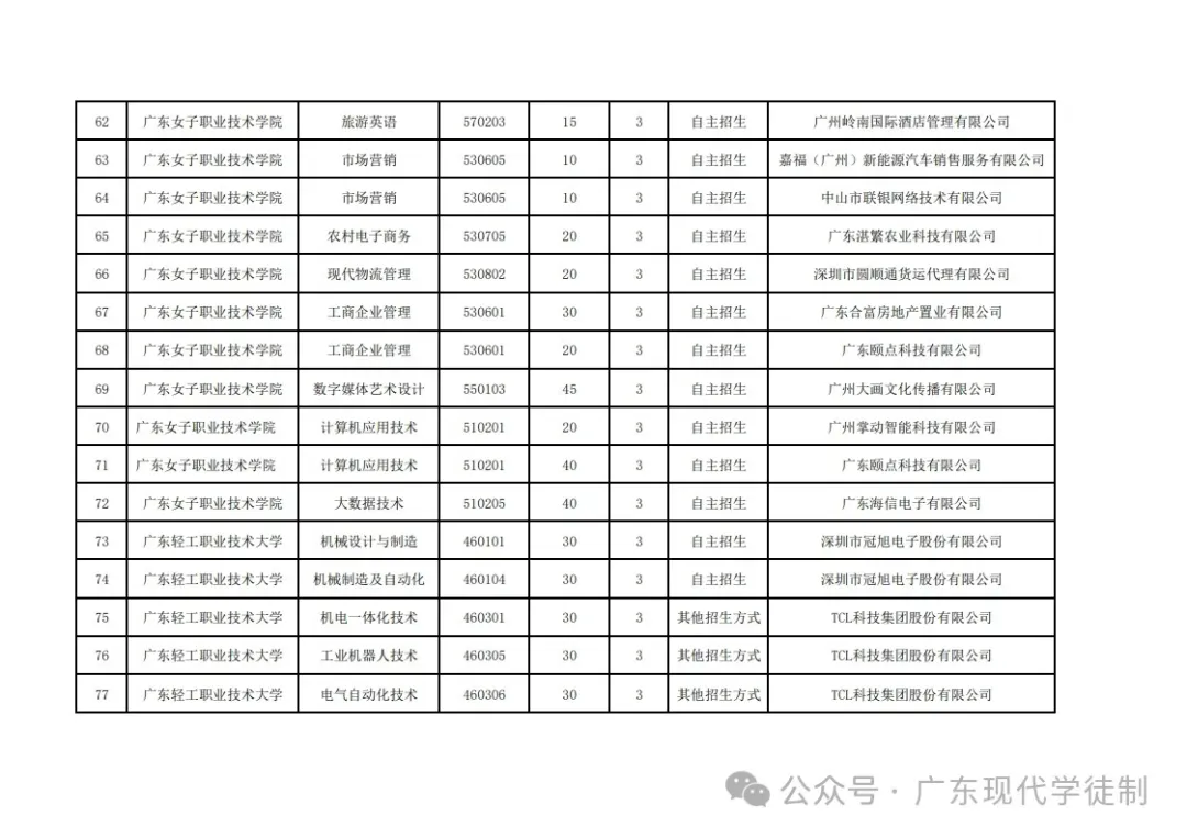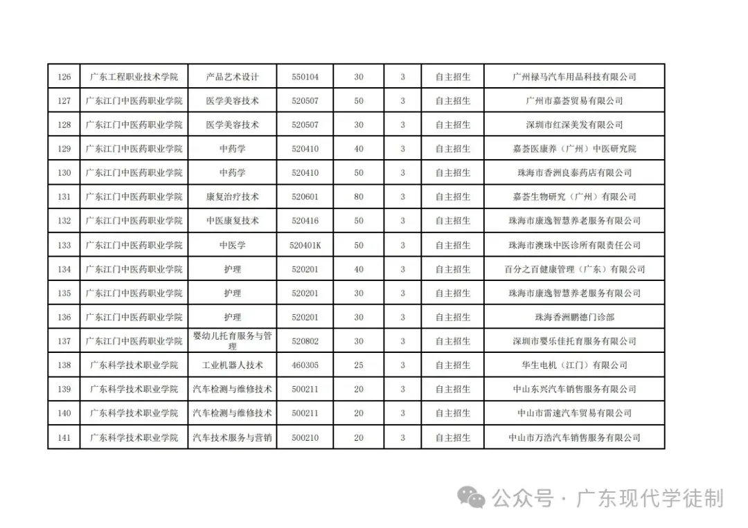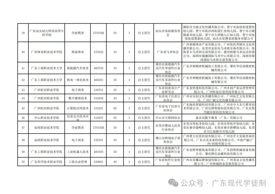 2025年广东省现代学徒制院校专业
