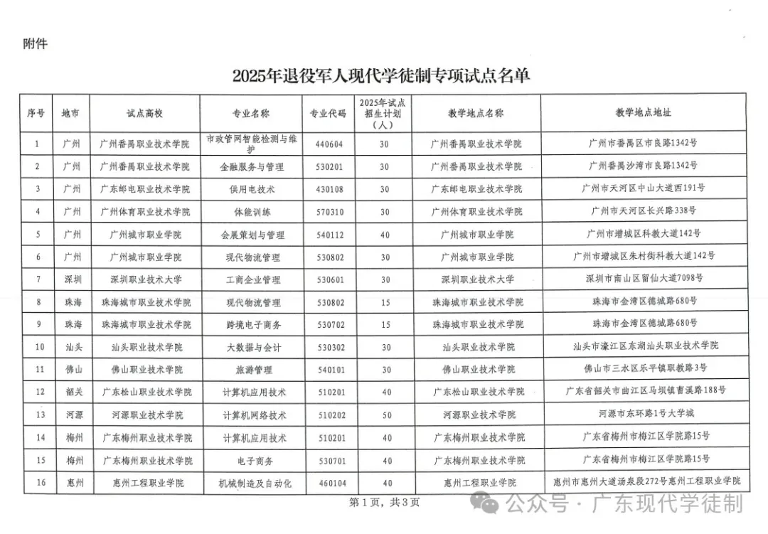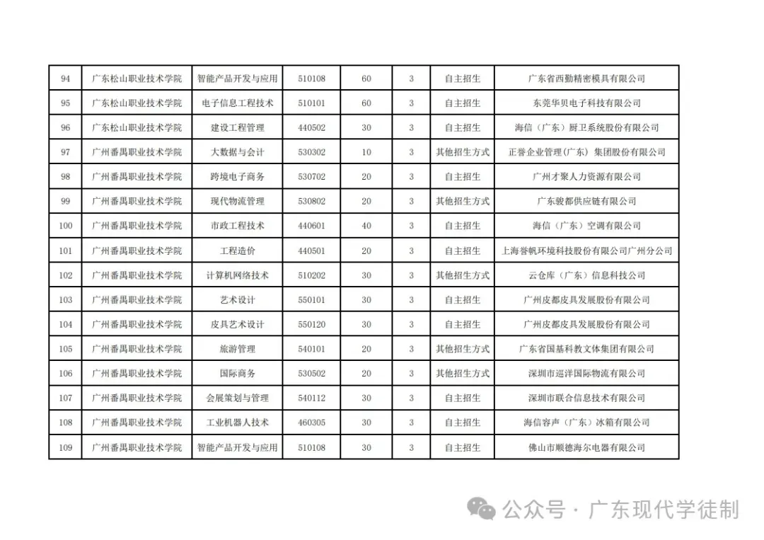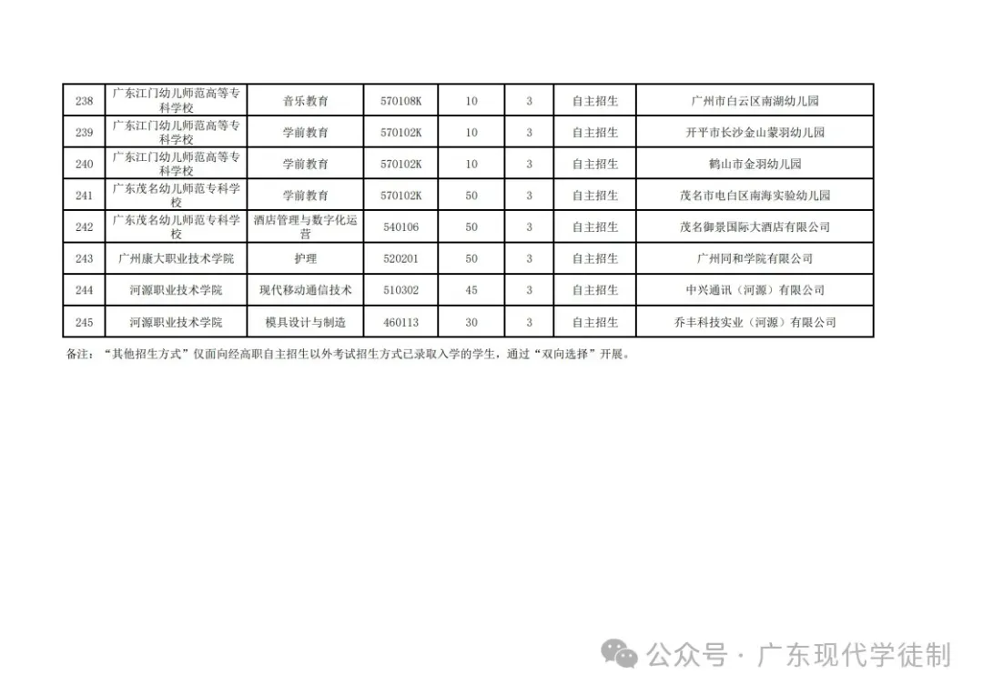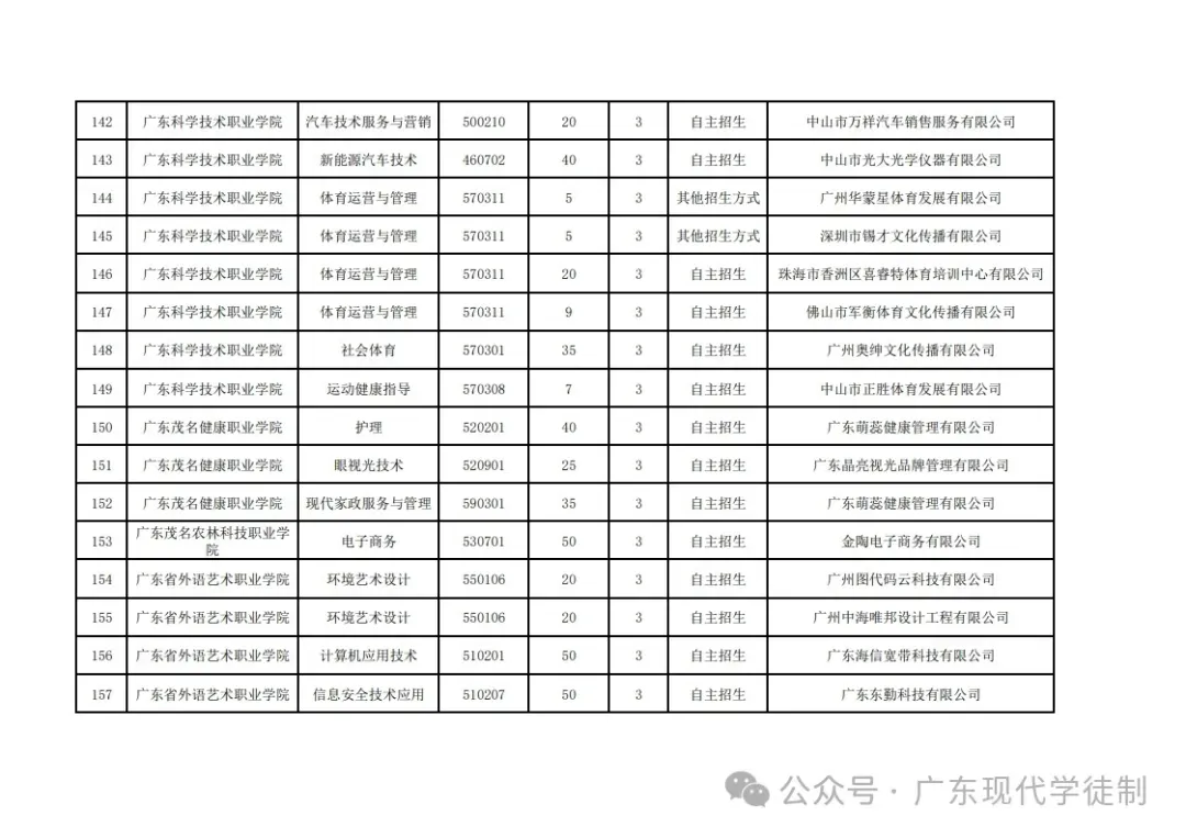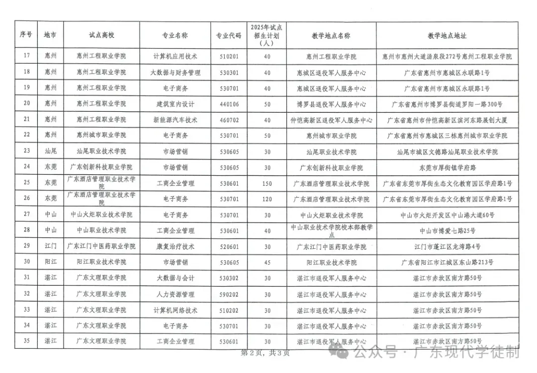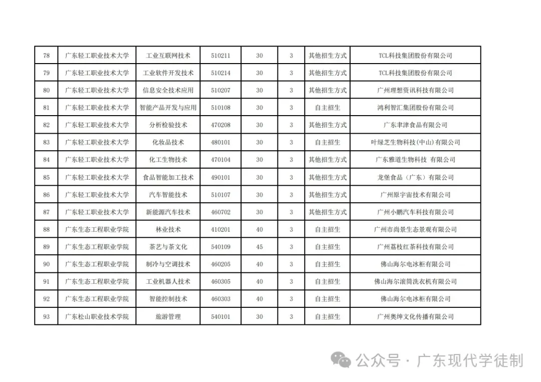 2025年广东省现代学徒制院校专业
