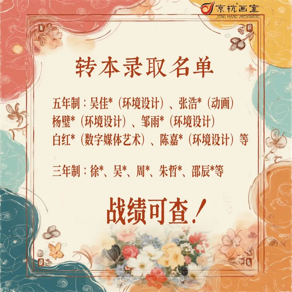 京杭画室辅导艺术类专业考学,成绩显著。2022至今三年制全部通过!五年制考学中斩获的录取名额逐年提高,环境设计、视觉传达、数字媒体艺术等专业通过率领先。