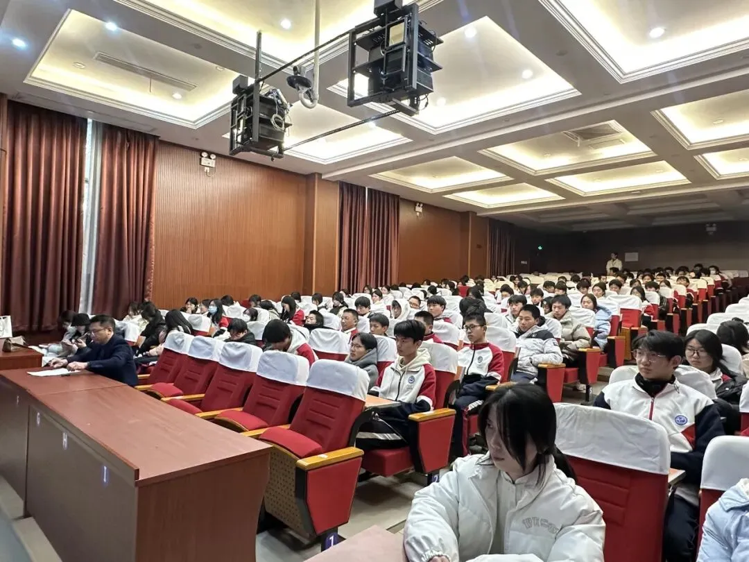 随后,肖开乐副校长围绕 “明确目标、满怀信心、持之以恒、认真细致” 四大要点,为同学们加油鼓劲。他指出,清晰的目标是行动的指南针,同学们要明确自身定位,无论是冲击本科还是超越自我,都应将目标可视化,时刻激励自己前行。针对备考心态,他鼓励大家相信学考政策带来的更多机遇,相信自身的潜力与老师的专业指导,以自信姿态直面压力。在坚持与自律方面,他特别强调寒假备考的重要性,呼吁同学们拒绝懈怠、控制手机依赖,通过每日积累筑牢学业根基;同时提醒大家在备考中注重细节,复习细致无遗漏、练习规范重严谨、考试沉着不粗心,以认真态度守护每一分努力。