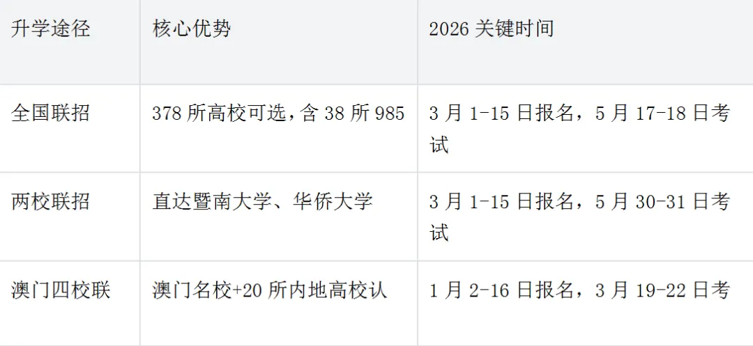 总结来说,暨附海珠校区强化班的培养优势,与全国联考的“广适配、多机会”特性形成了最佳组合:强化班帮你筑牢竞争力,全国联考给你更广的舞台。当然,若你有清晰的“两校目标”,也完全可以针对性备考。关键是结合自身专业倾向、成绩水平做选择——毕竟,适合自己的,才是最好的升学路。