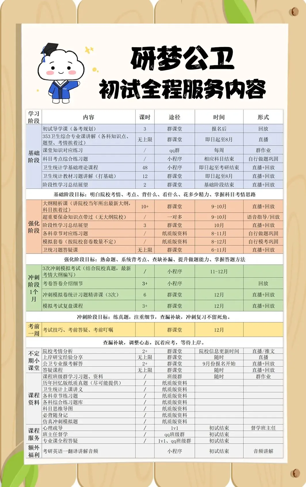 承认差距,更要付出行动。流统是核心,优先拿下。三大卫生(环境卫生、职业卫生、营养与食品卫生)内容多,但理解记忆为主,可以稍晚启动,但也要系统学习。建议:找靠谱的网课辅助理解(比如一些口碑好的B站资源、MOOC),或者请教本专业的同学/学长学姐(比如研梦研梦研梦)。