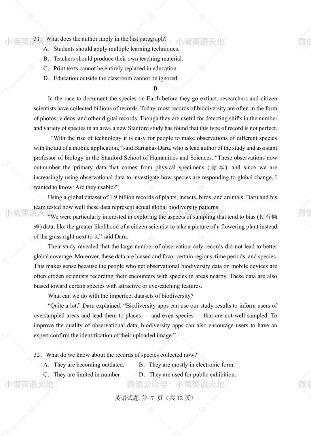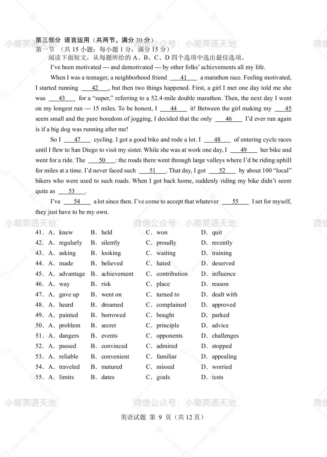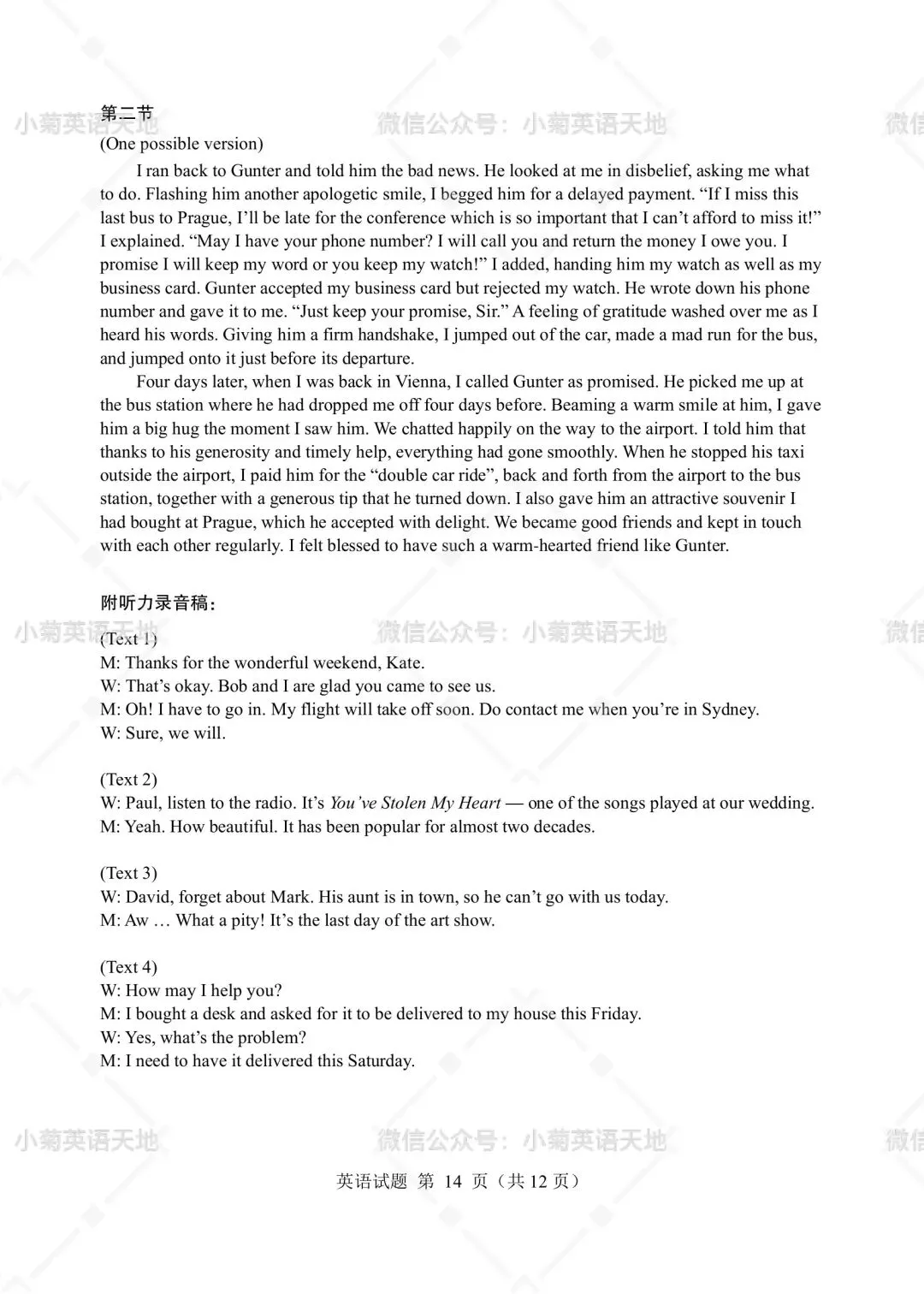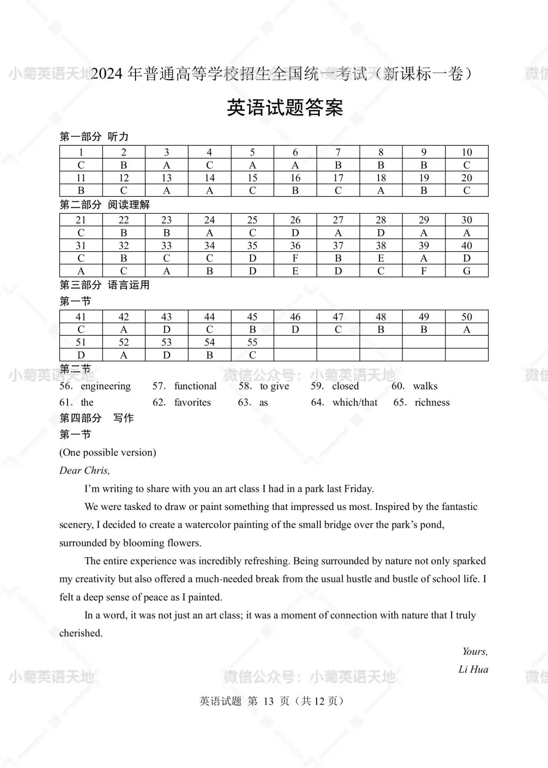 分享2024年普通高等学校招生全国统一考试英语试题(新课标一卷)(PDF版原卷)