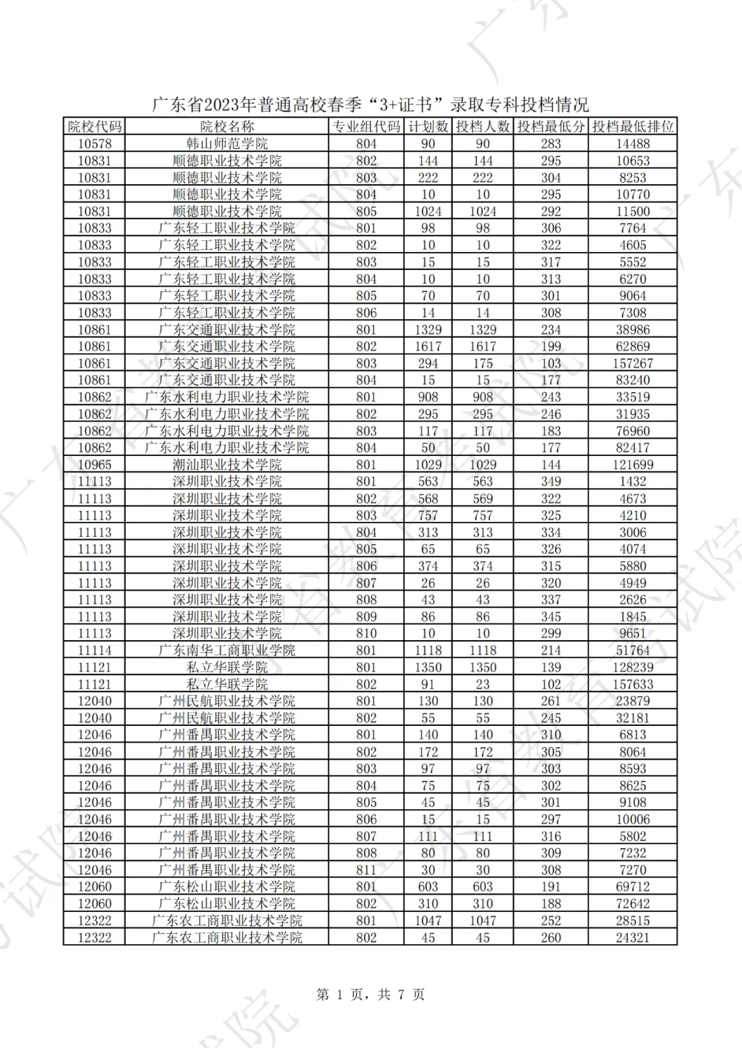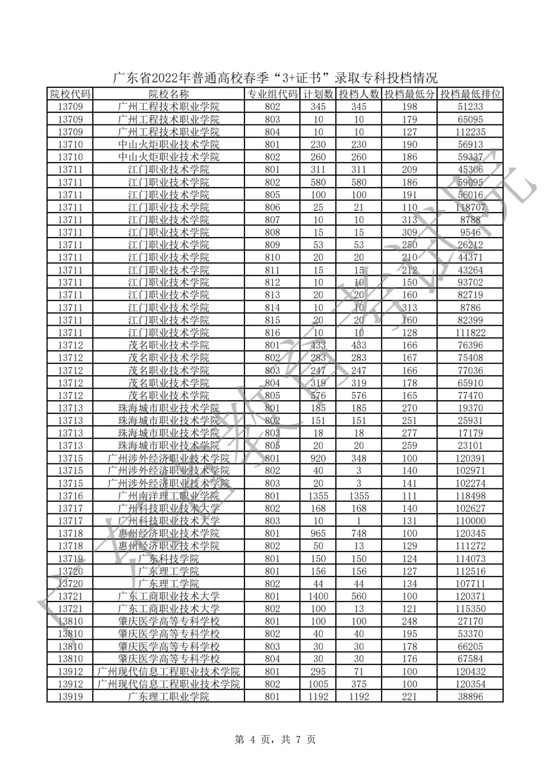 2022年3+证书投档情况