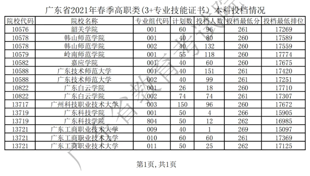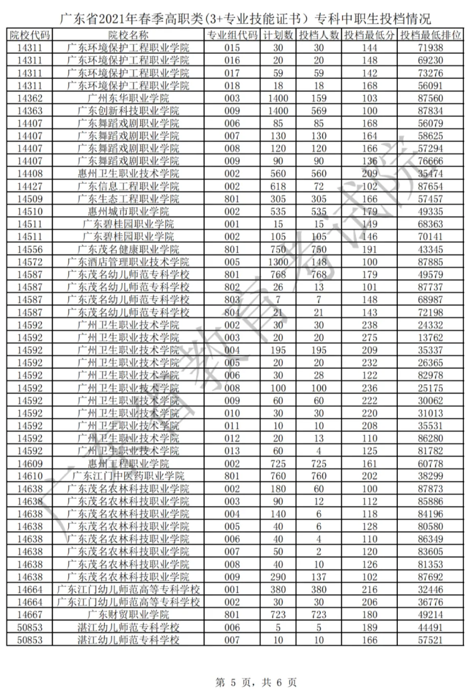 2021年3+证书投档情况