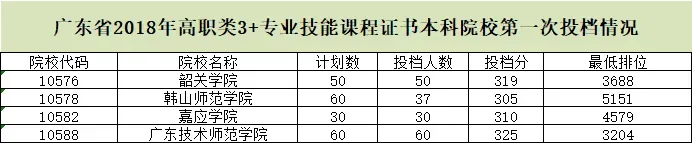 广东省2019年普通高校春季分类考试(“3+专业技能课程证书”)招生录取最低分数线如下: